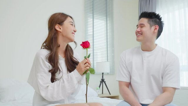 beautiful Asian with his girlfriend share a guy