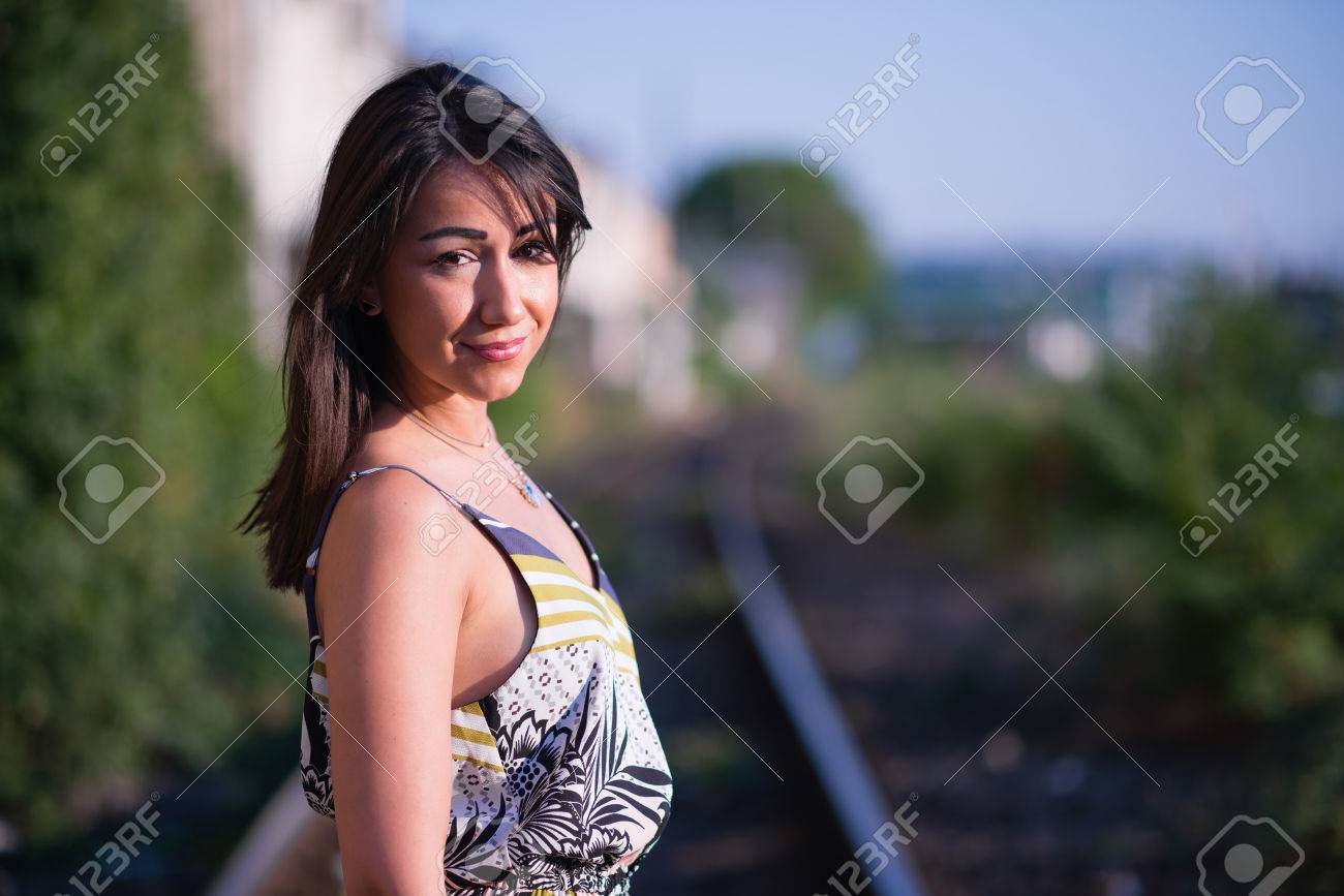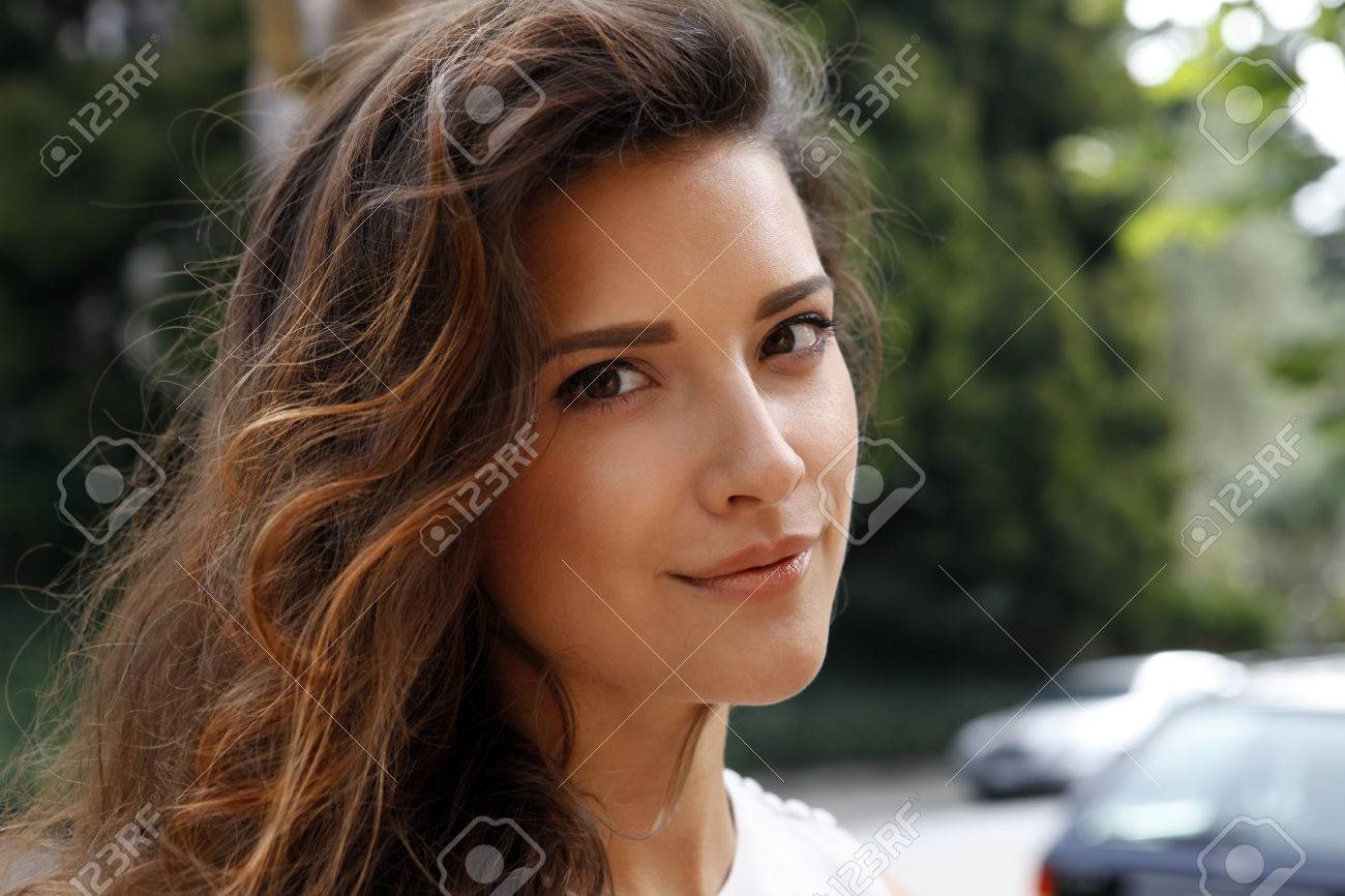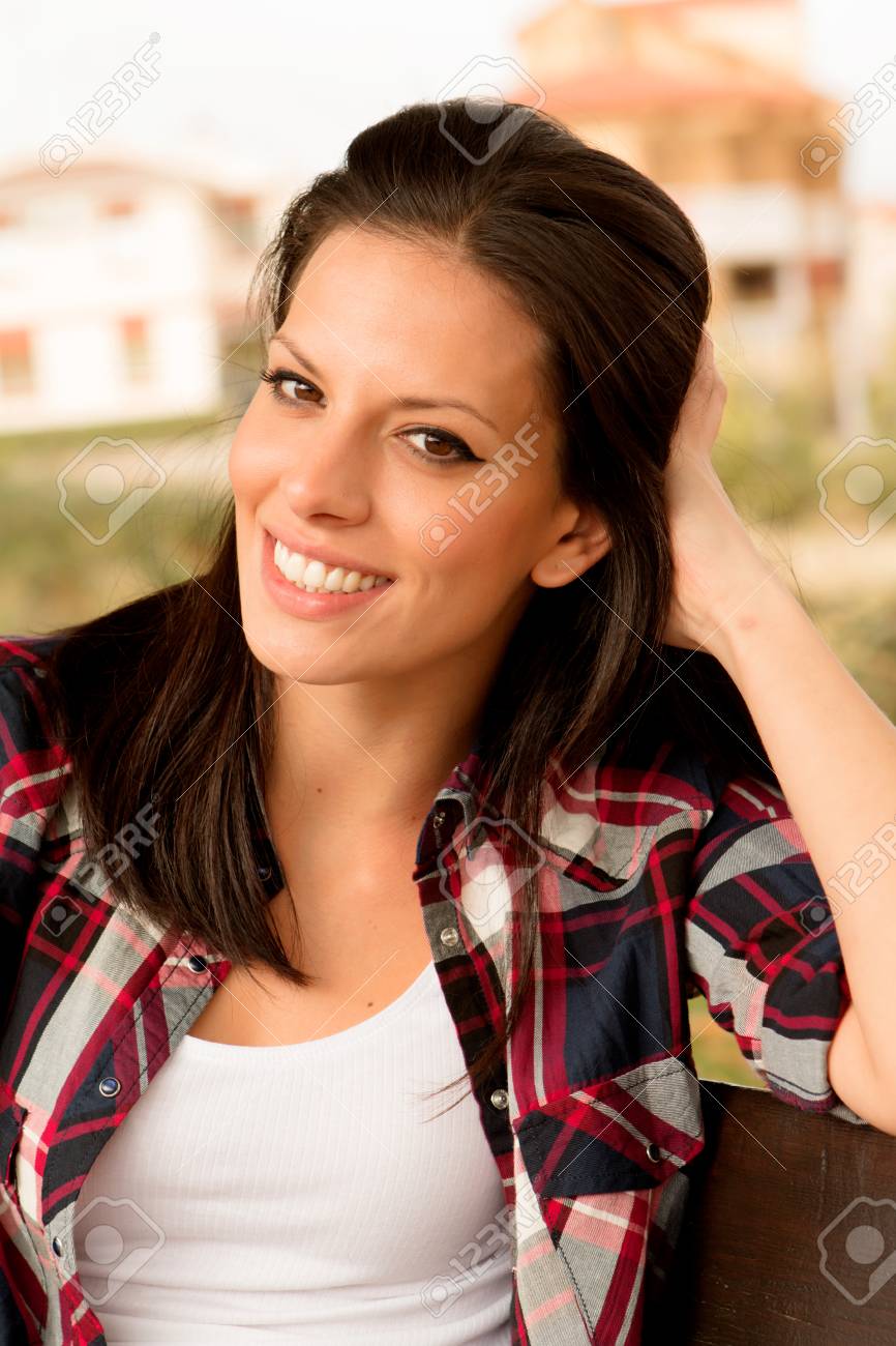 beautiful brunette outside