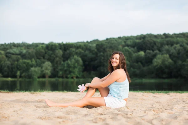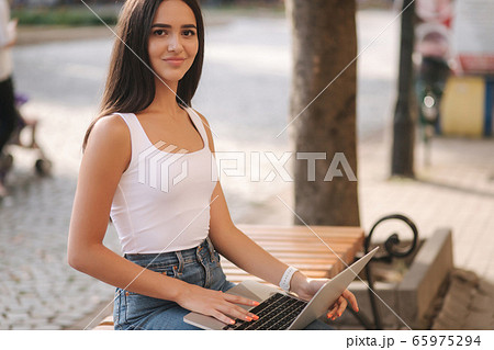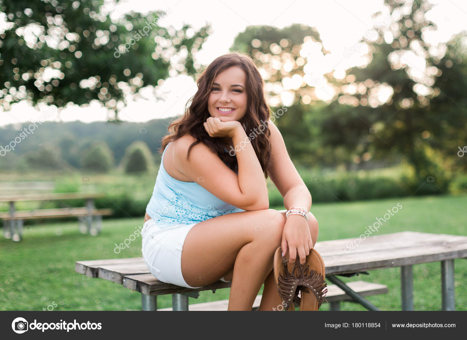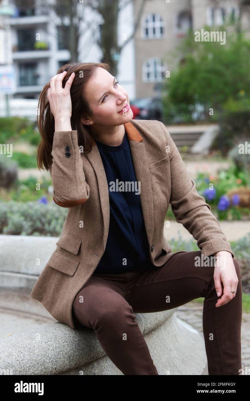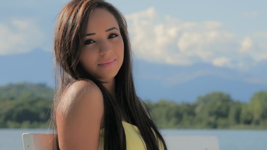 beautiful brunette outside