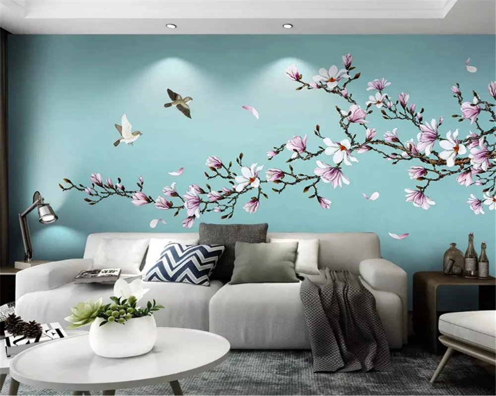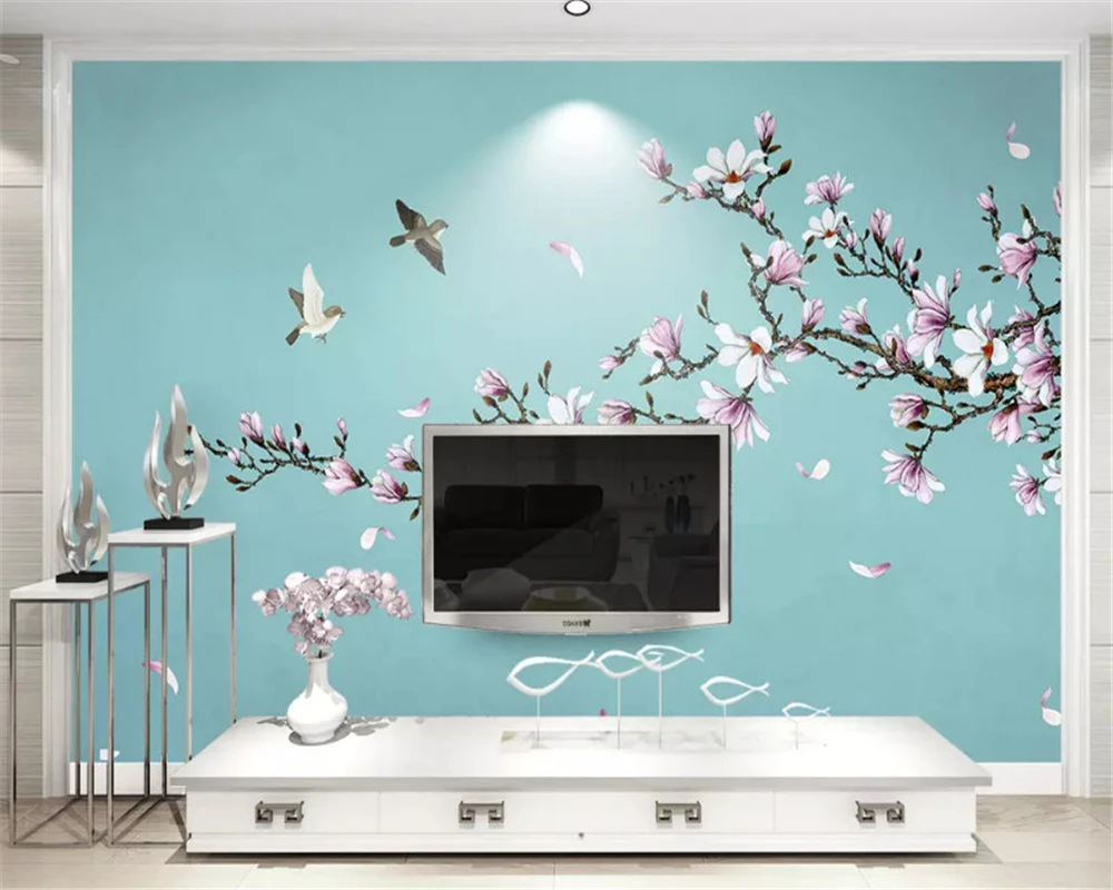 "beibehang Custom three-dimensional thickening wall paper Magnolia hand-painted pen and bird new Chinese background 3d wallpaper" * Buy Now Just For 8$