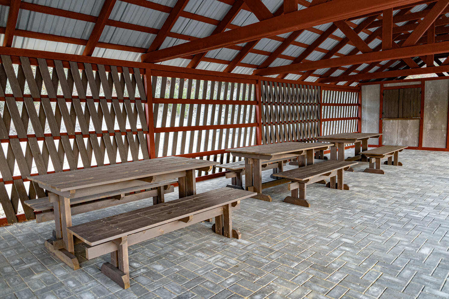 There is a red table