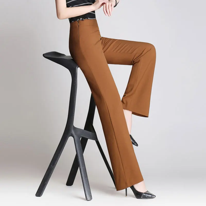 "big Size Women High Waist Formal Pants Spring Autumn Straight LegPants Female Loose Wide Leg Bell Bottom Trousers Black Brown" * Buy Now Just For 36$