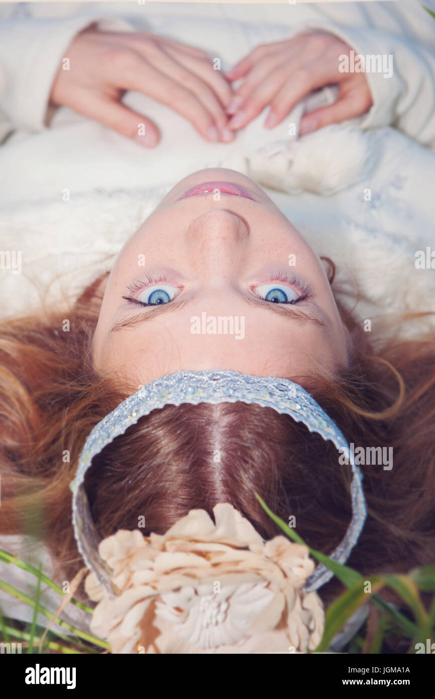 blond angel with pink nails