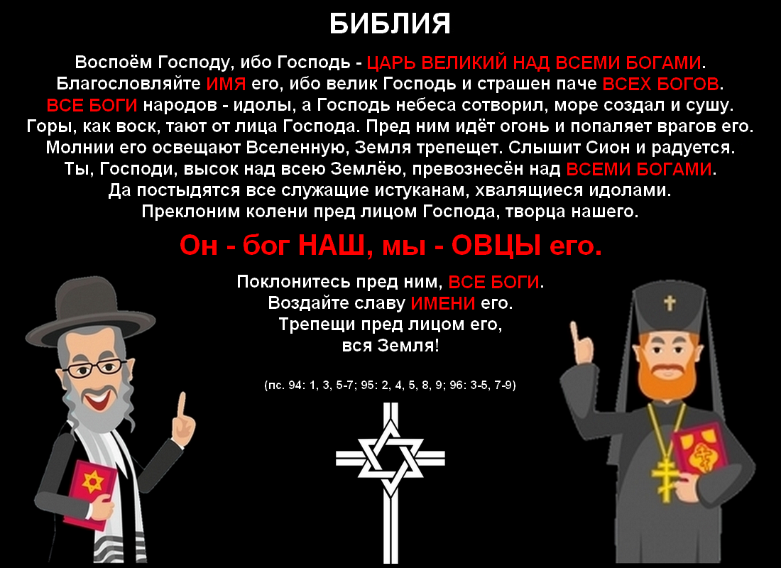 г) девяносто пятой сообщается, что "Господь страшен паче всех богов, ибо все боги народов - идолы", а он, конечно же, нет;