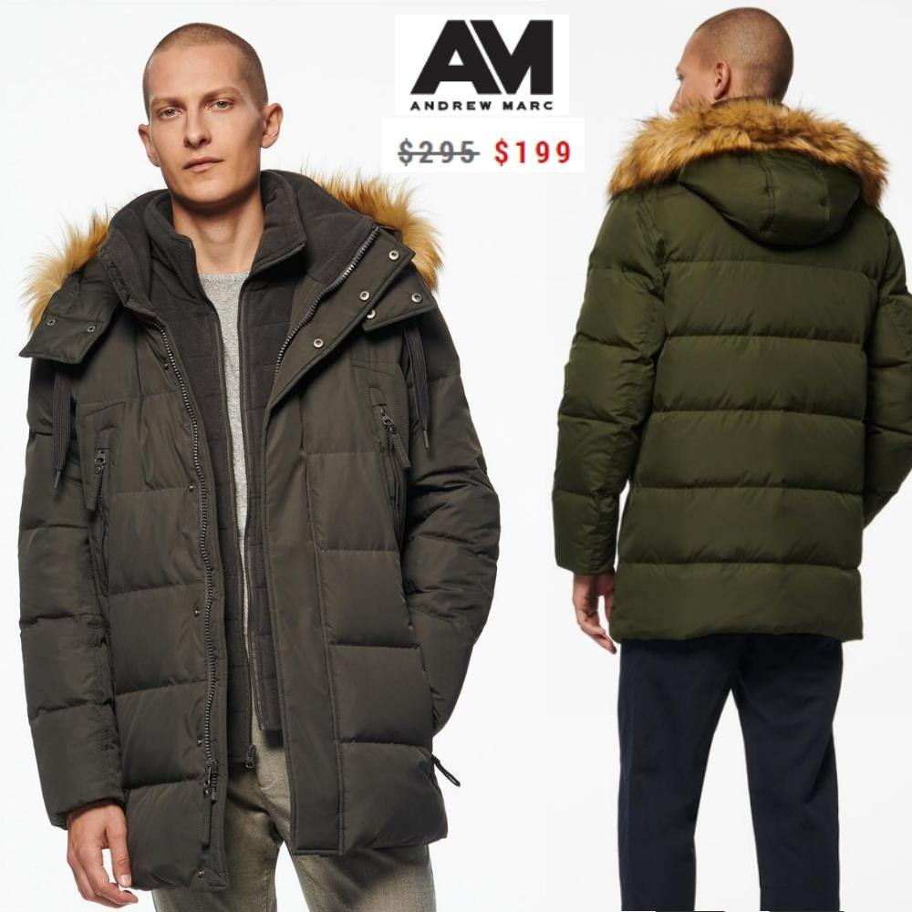 199,00 https://www.andrewmarc.com/product/conway+matte+down+parka+smoke+military.do