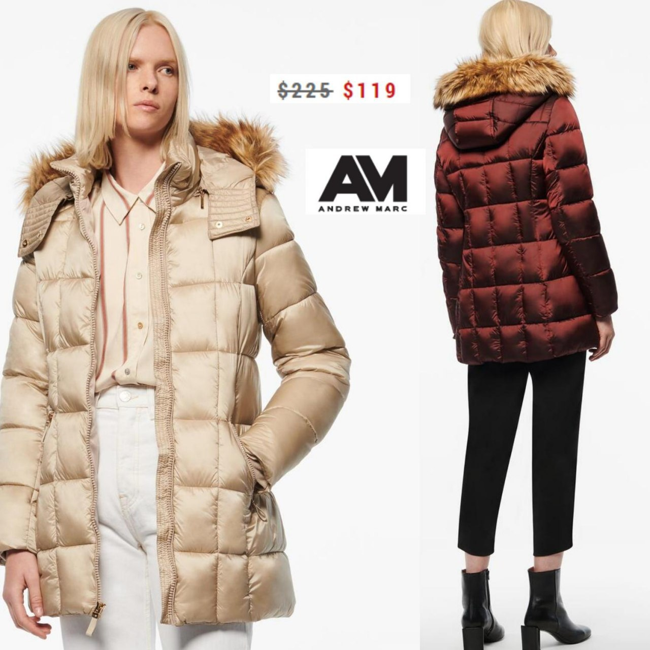 119,00 https://www.andrewmarc.com/product/macoya+synthetic+down+hooded+puffer.do