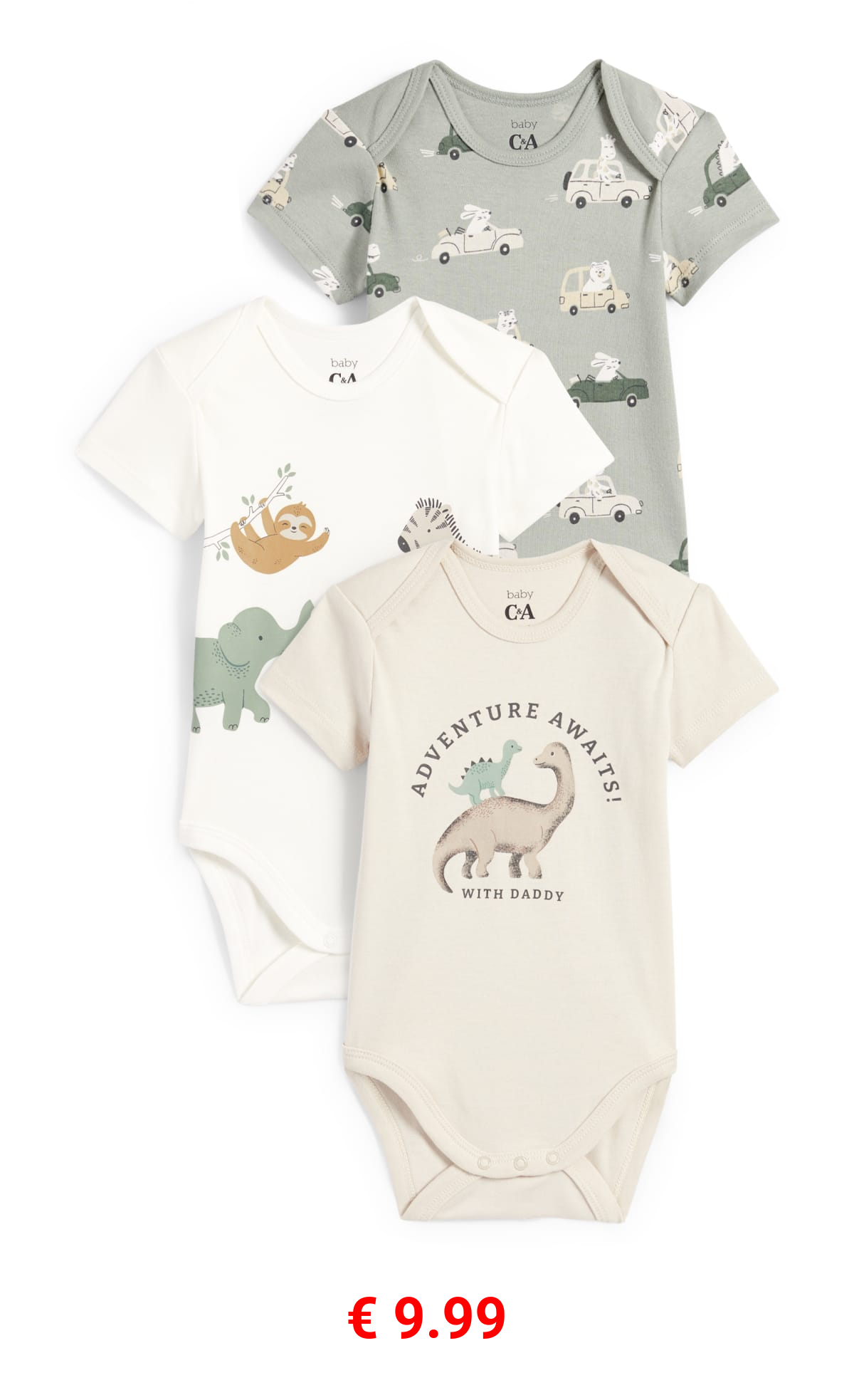 € 9.99 Multipack 3er - Tiere und Autos - Baby-Body