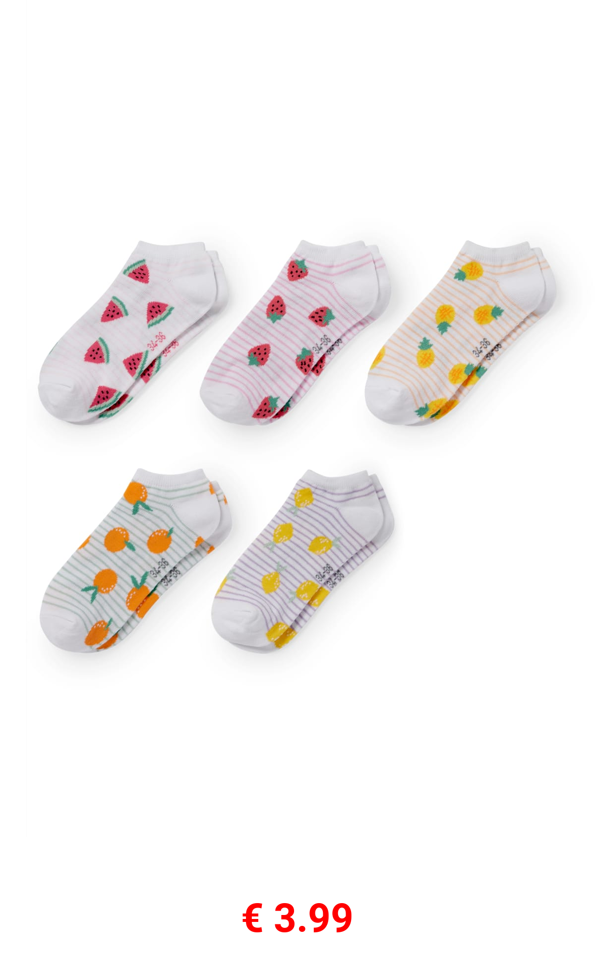 € 3.99 Multipack 5er - Früchte - Sneakersocken mit Motiv
