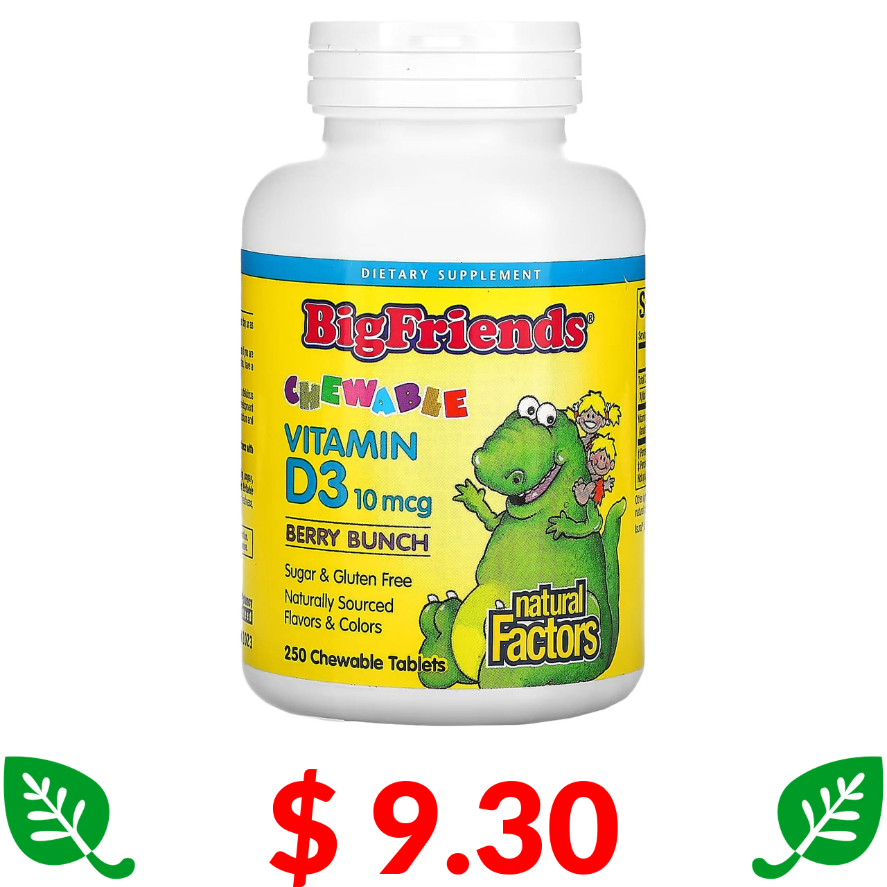 $ 9.30 Natural Factors, Big Friends, жувальний вітамін D3, ягідний смак, 10 мкг, 250 жувальних таблеток