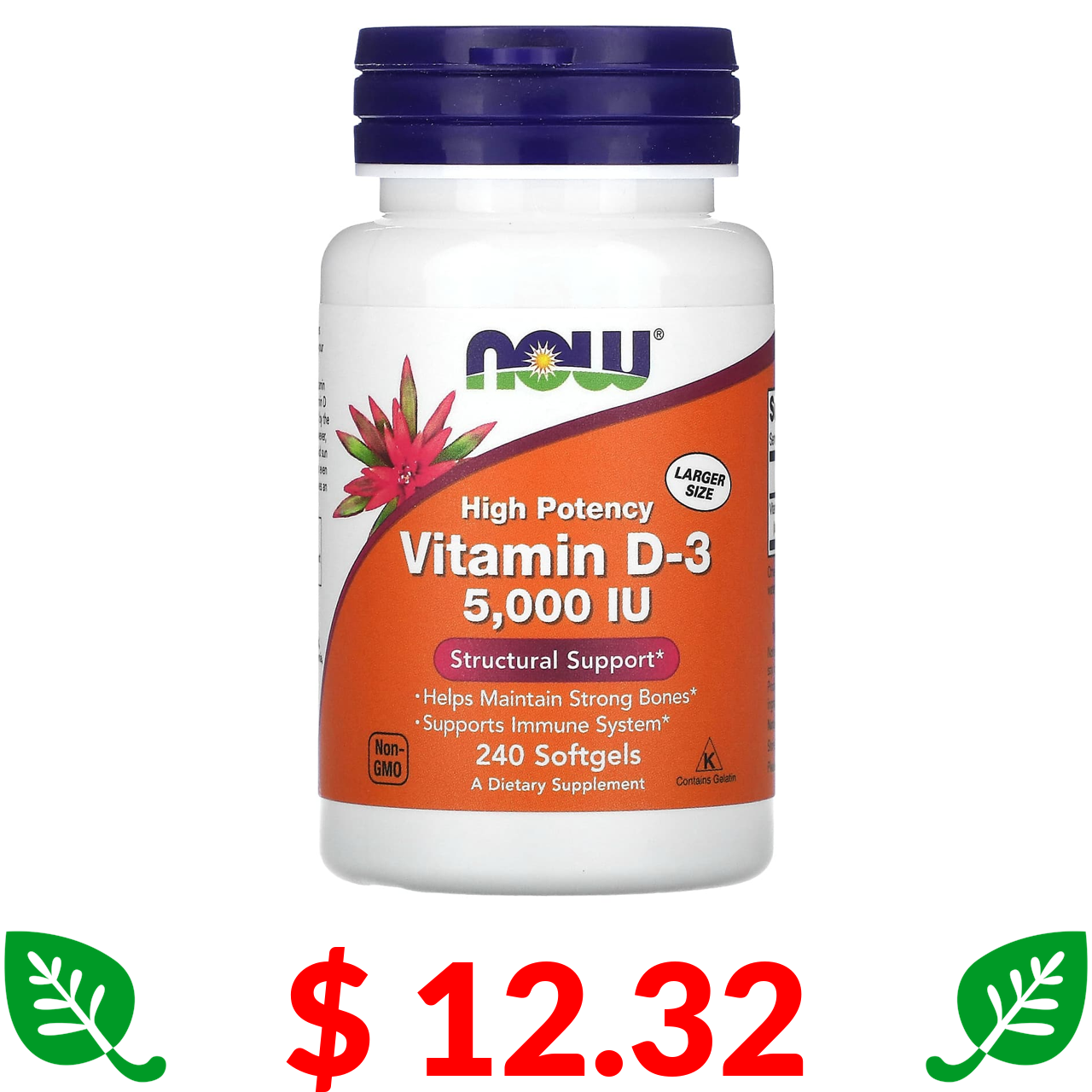 $ 12.32 Now Foods, високоефективний вітамін D3, 125 мкг (5000 МО), 240 капсул
