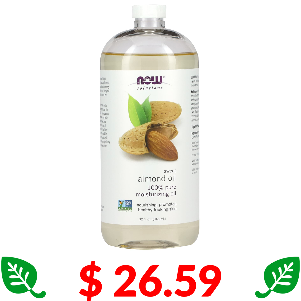 $ 26.59 Now Foods, Solutions, олія солодкого мигдалю, 32 рідких унції (946 мл)