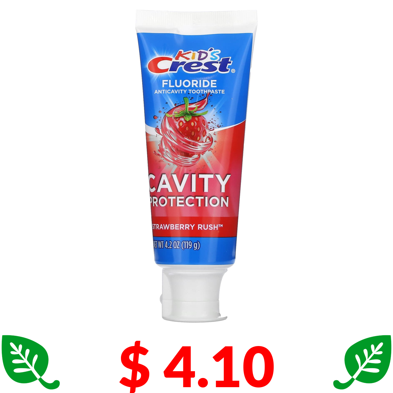 $ 4.10 Crest, Kids, зубна паста проти карієса з фтором, для дітей від 2 років, зі смаком полуниці, 119 г (4,2 унції)