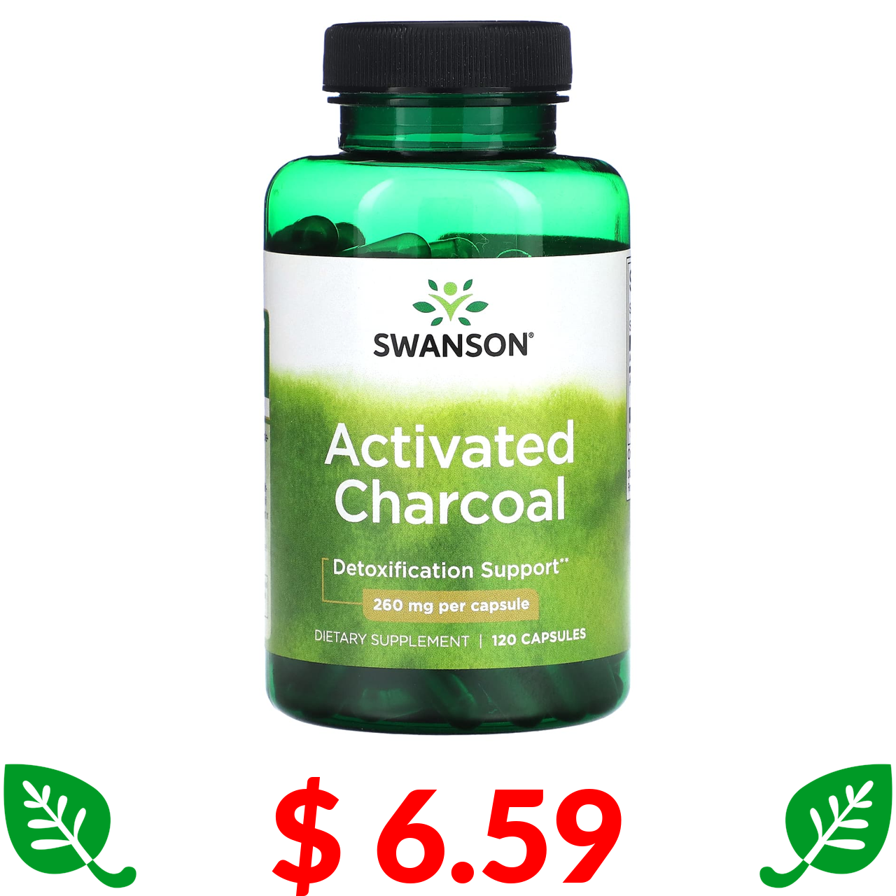 $ 6.59 Swanson, Activated Charcoal, 260 mg, 120 Capsules