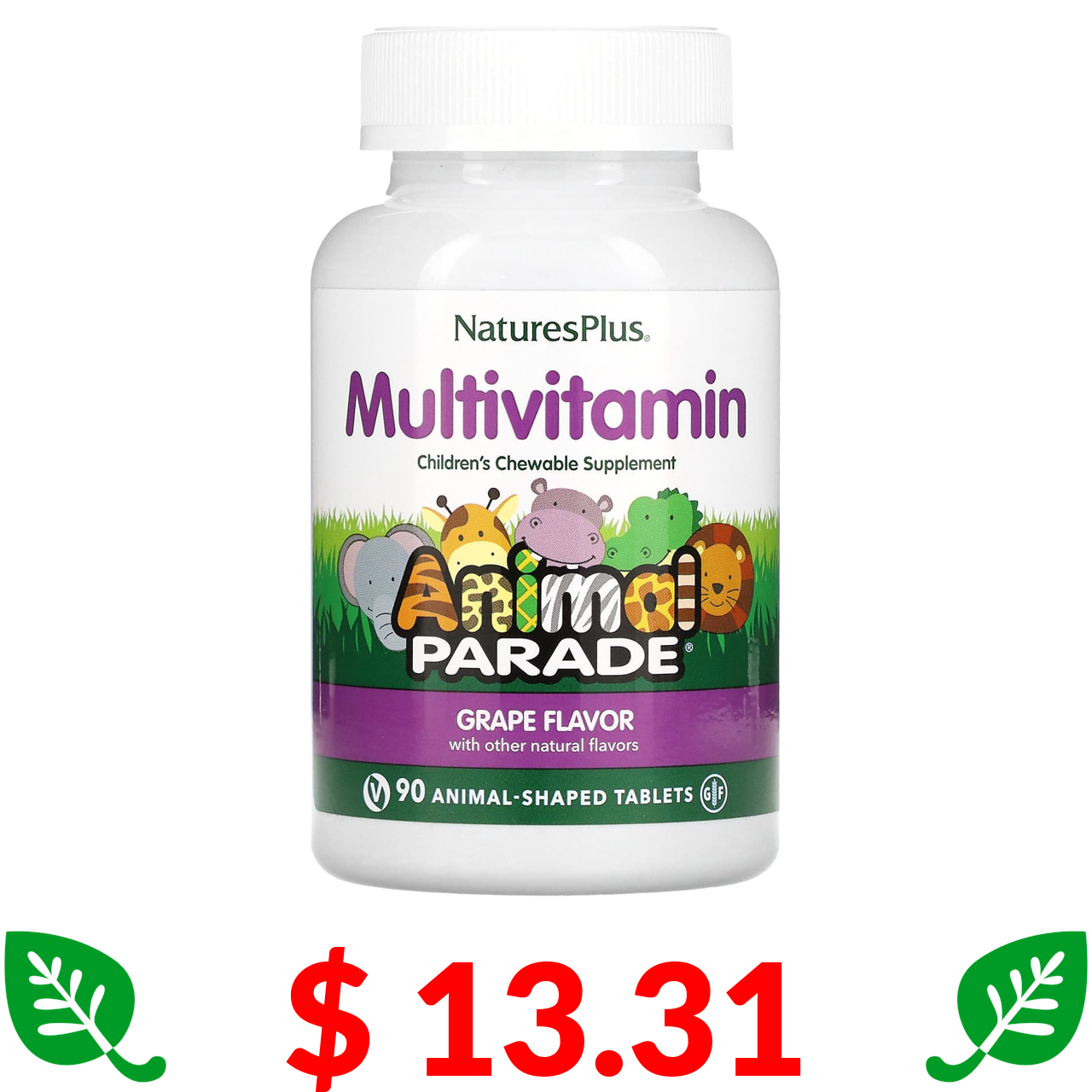 $ 13.31 Nature's Plus, Source of Life, Animal Parade, жувальна добавка з мультивітамінами та мікроелементами для дітей, виноград, 90 таблеток у формі тварин