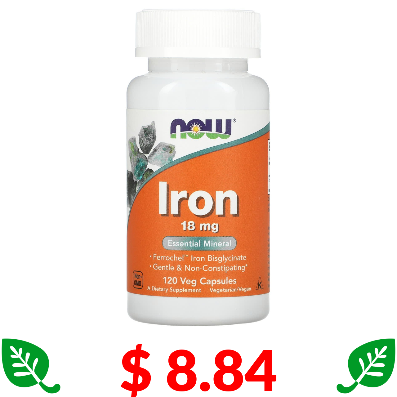 $ 8.84 Now Foods, залізо, 18 мг, 120 рослинних капсул