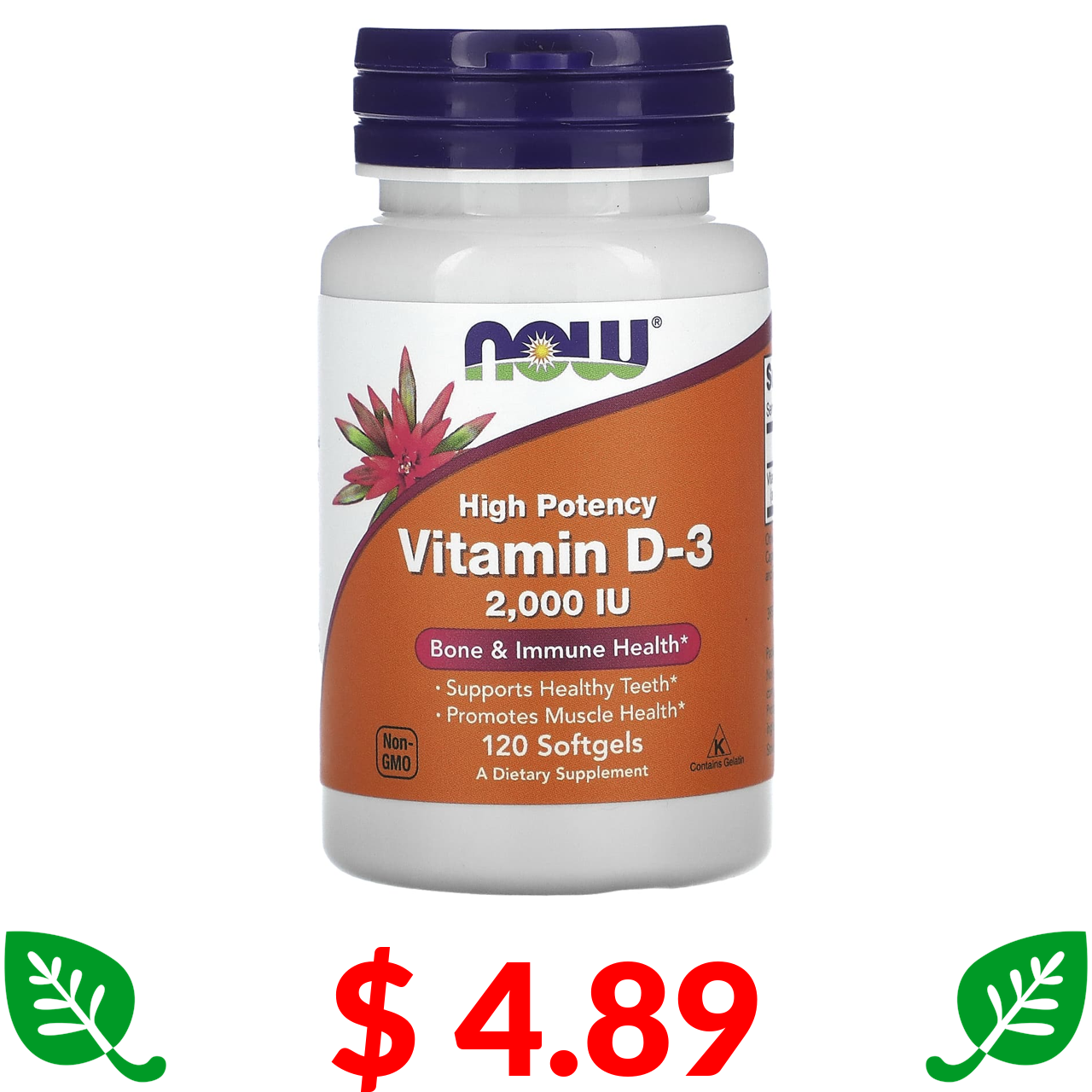 $ 4.89 Now Foods, високоефективний вітамін D3, 50 мкг (2000 МО), 120 капсул