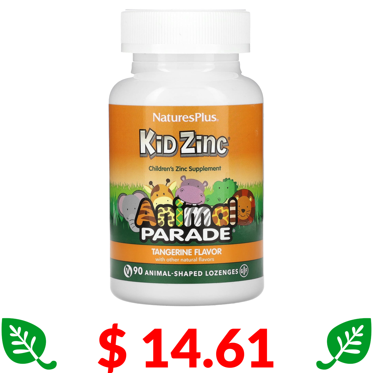 $ 14.61 Nature's Plus, Source of Life, Animal Parade, Kid Zinc, пастилки для дітей із цинком, натуральний смак мандарина, 90 пастилок у формі тварин