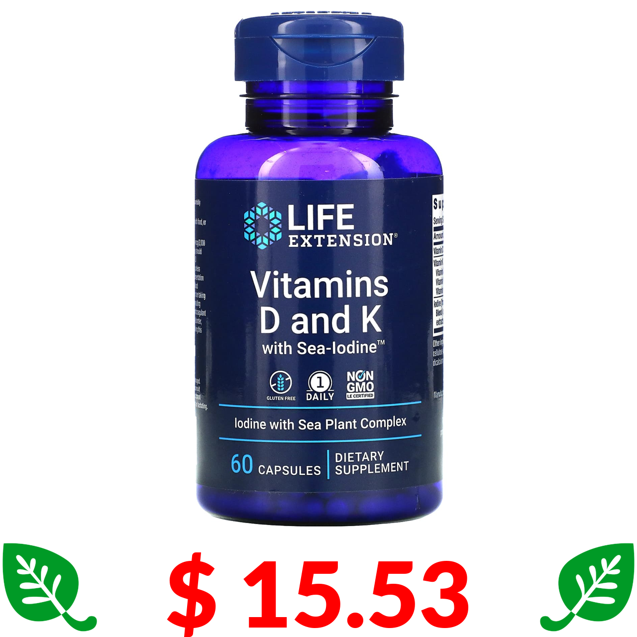 $ 15.53 Life Extension, Вітаміни D і K з морським йодом, 60 капсул