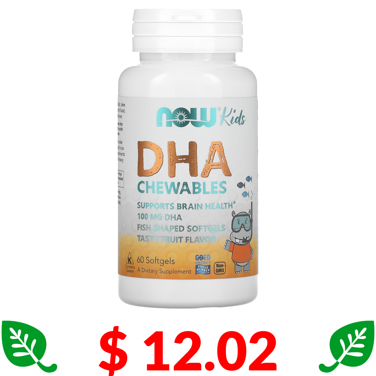 $ 12.02 Now Foods, жувальна ДГК для дітей, зі смаком фруктів, 60 жувальних таблеток