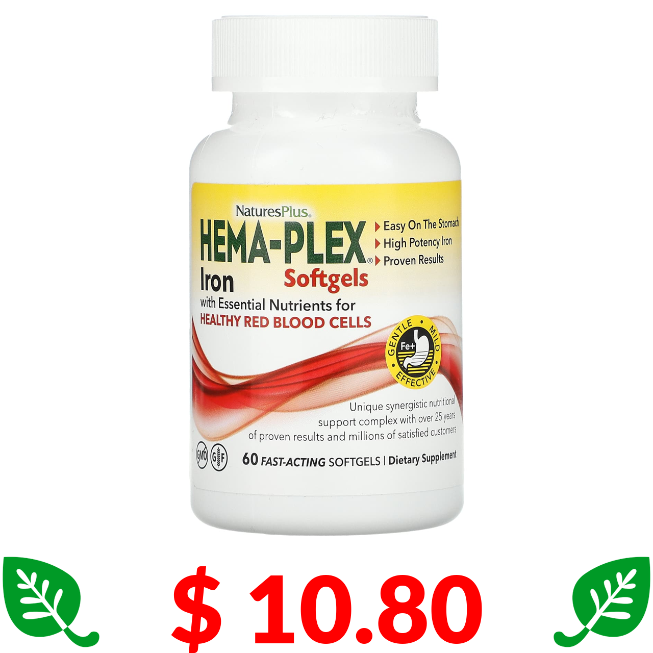 $ 10.80 Nature's Plus, Hema-Plex, 60 швидкодіючих капсул