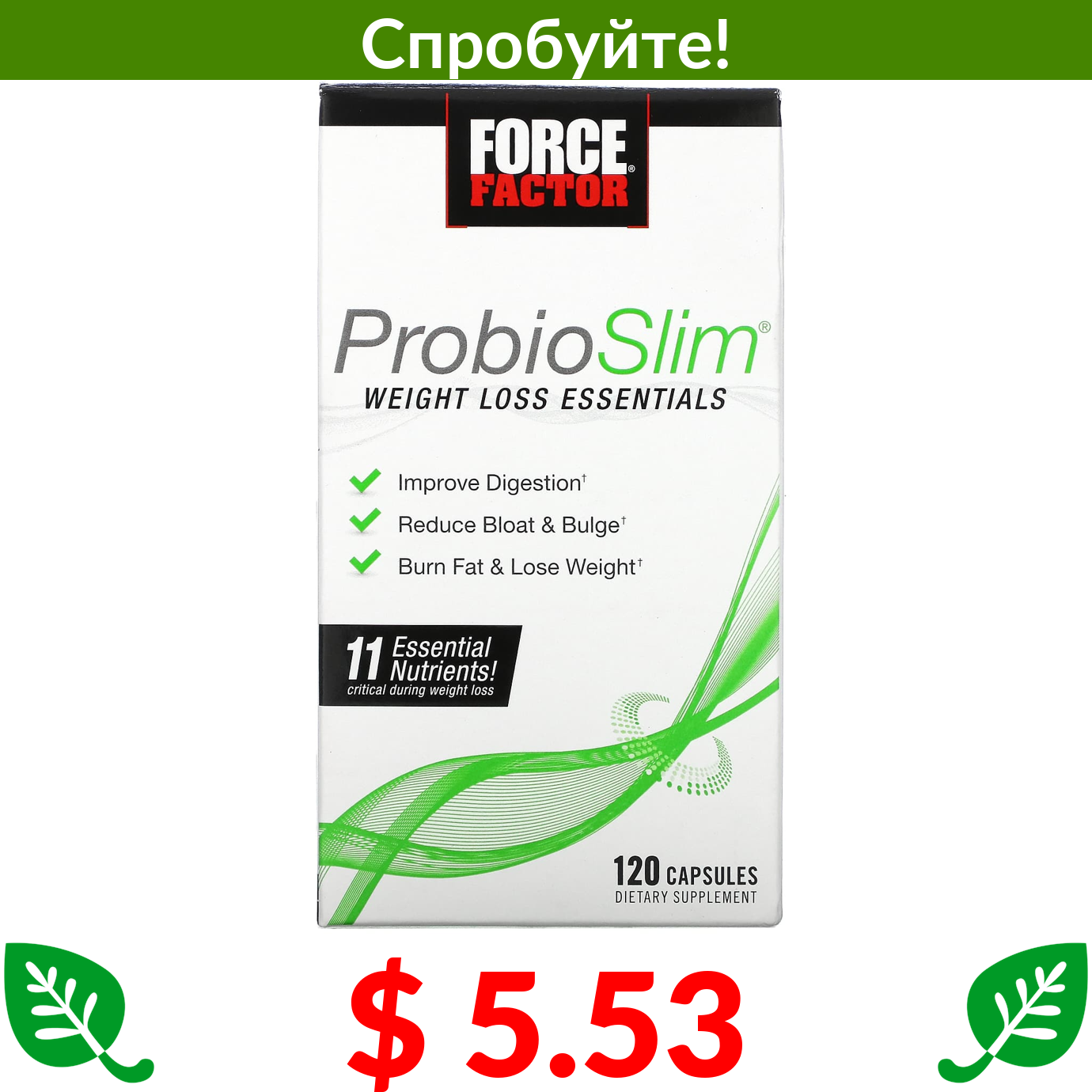 $ 5.53 Force Factor, ProbioSlim, незамінні поживні речовини для зниження ваги, 120 капсул