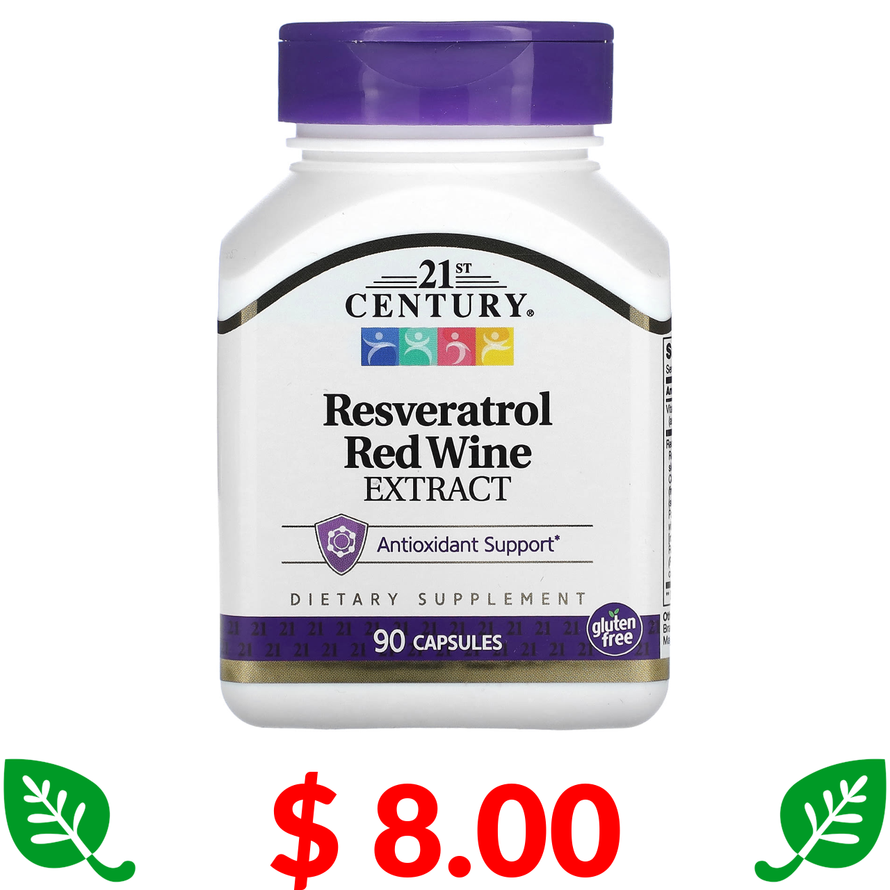 $ 8.00 21st Century, Resveratrol Red Wine Extract, 90 Capsules