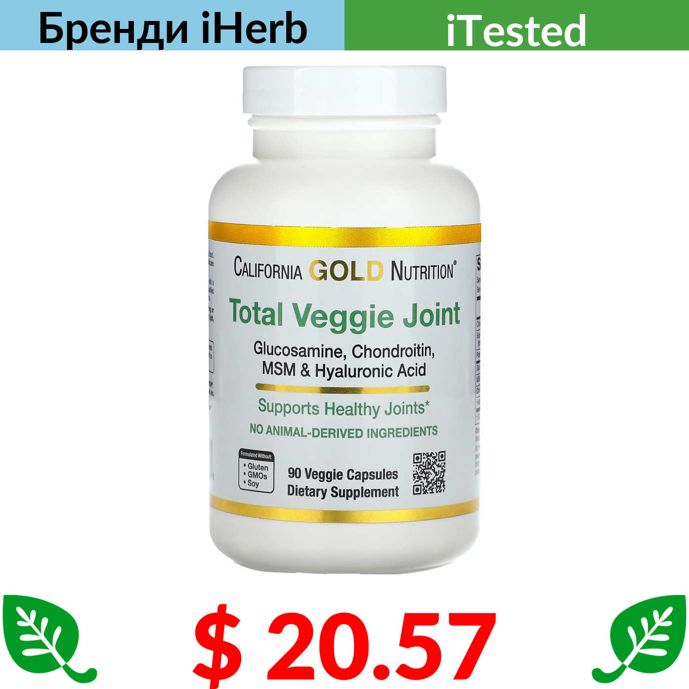$ 20.57 California Gold Nutrition, вегетаріанська добавка для здоров’я суглобів, глюкозамін, хондроїтин, МСМ і гіалуронова кислота для вегетаріанців, 90 вегетаріанських капсул