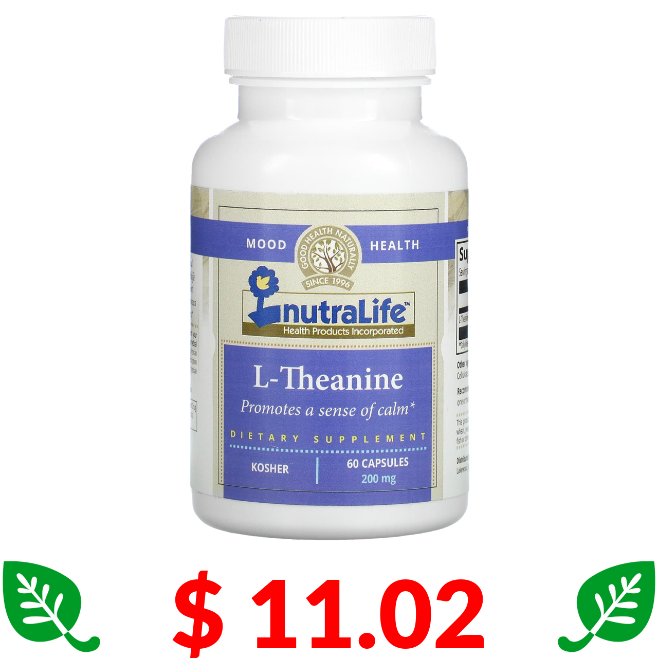 $ 11.02 NutraLife, L-теанін, 200 мг, 60 капсул