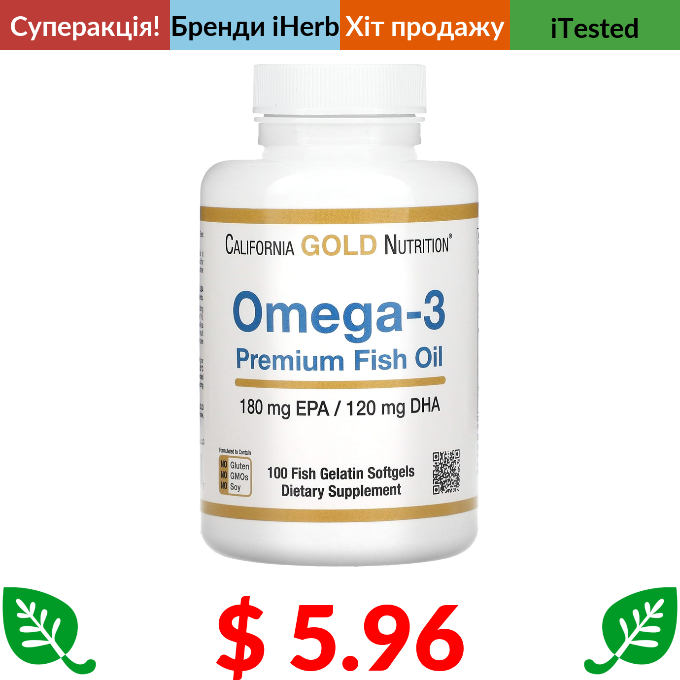 $ 8.03 Now Foods, риб’ячий жир з омега-3, 1000 мг, 180 мг ЕПК-120 мг ДГК, 100 капсул