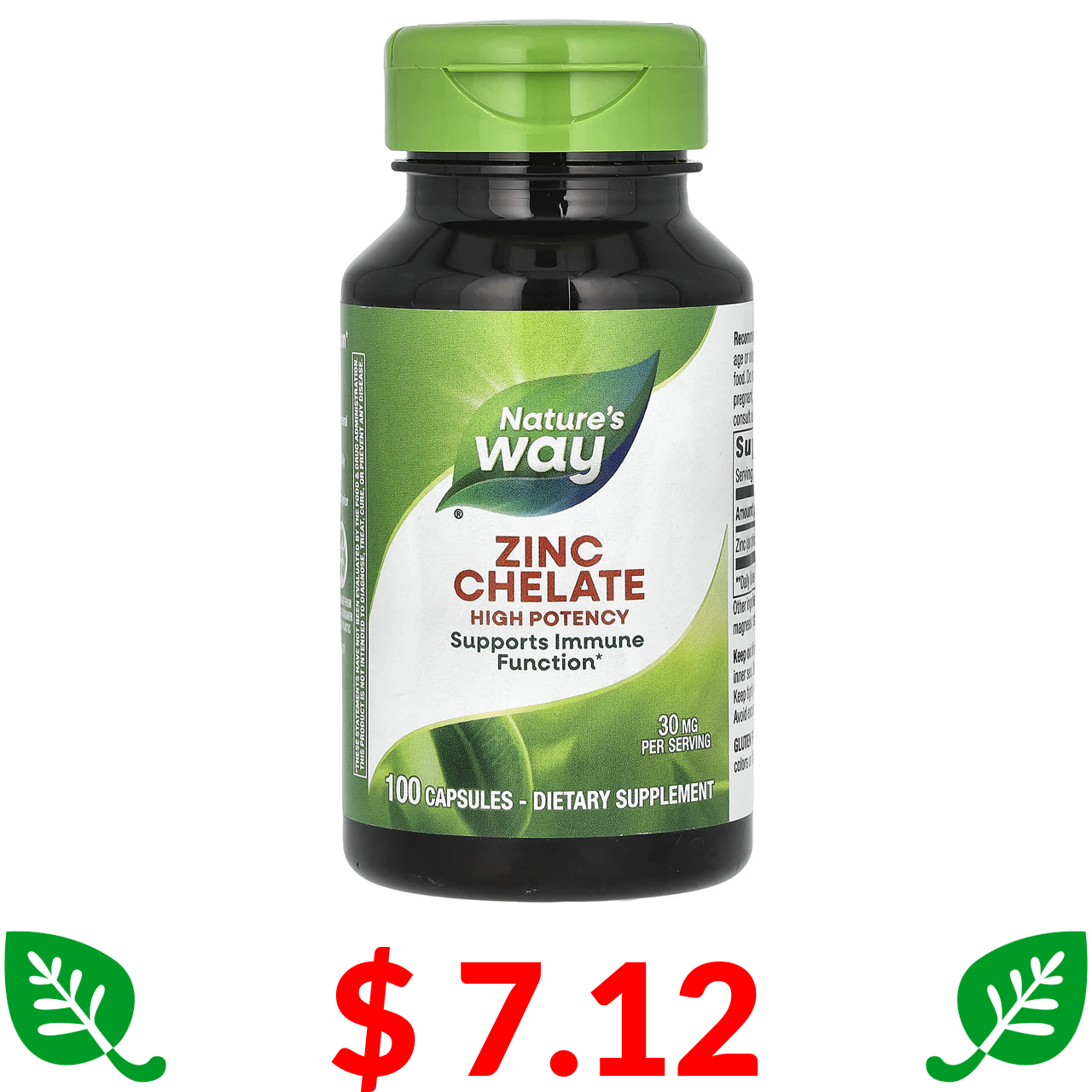 $ 7.12 Nature's Way, хелат цинку, 30 мг, 100 капсул