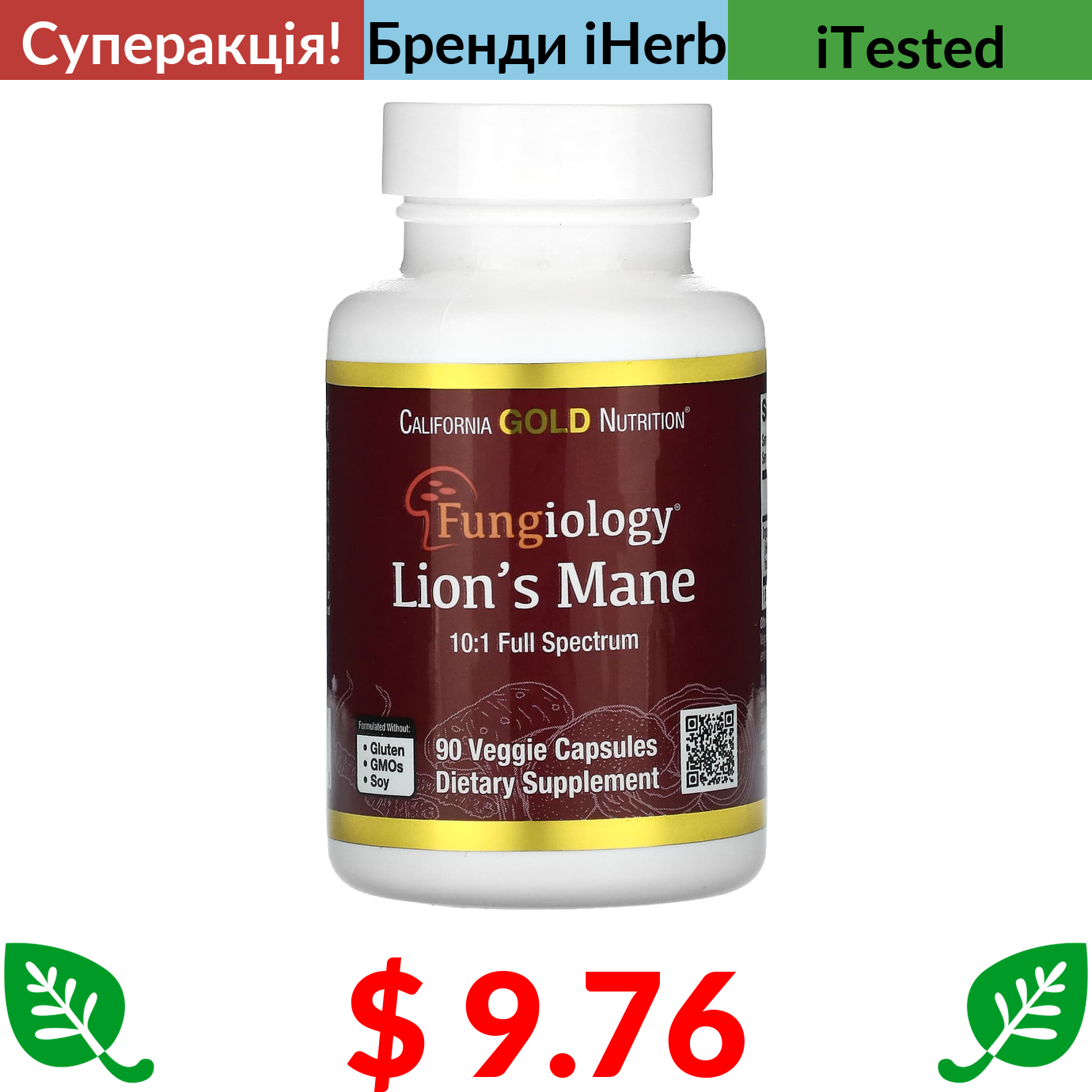 $ 9.76 California Gold Nutrition, їжовик гребінчастий, 90 капсул PlantCaps