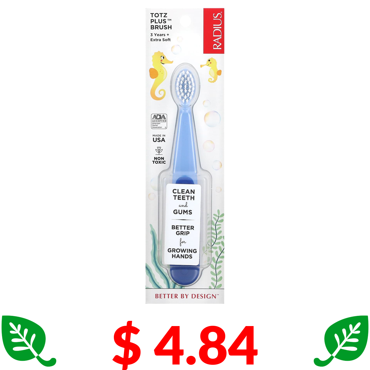 $ 4.84 RADIUS, Щітка Totz Plus, 3 роки +, надзвичайно м’яка, блакитна, 1 зубна щітка