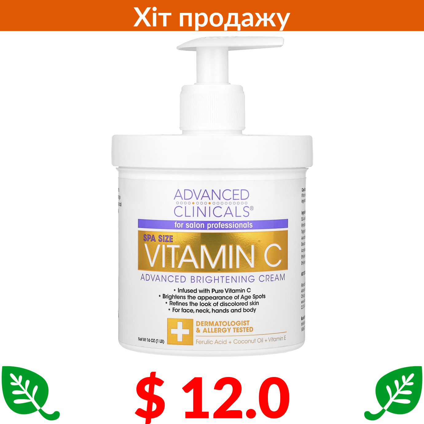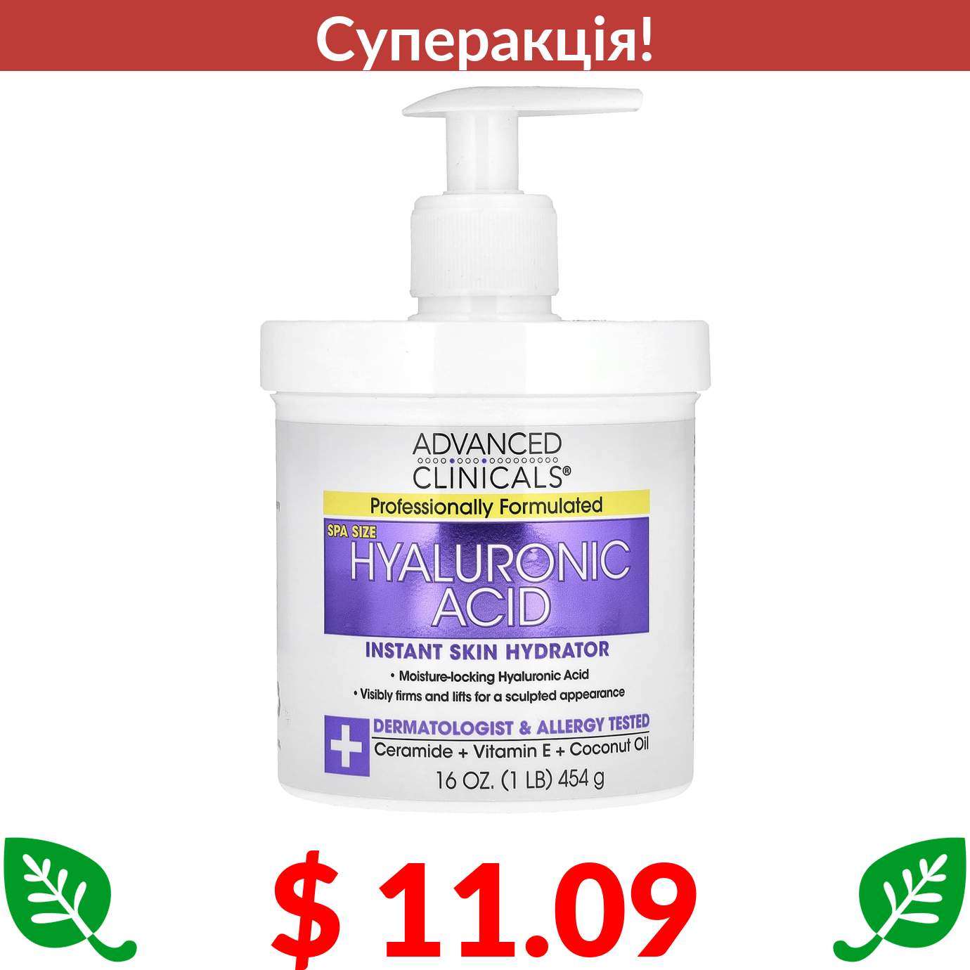$ 11.09 Advanced Clinicals, зволожувальний крем із кокосовою олією, 475 мл (16 рідк. унцій)