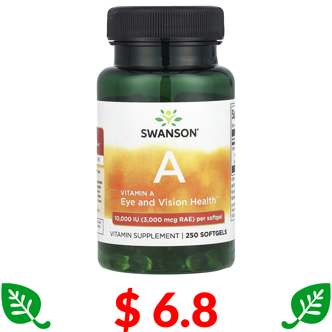 $ 6.8 Swanson, вітамін A, 10 000 МО, 250 капсул