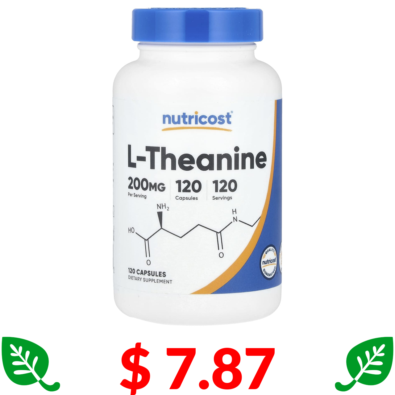$ 7.87 Nutricost, L-теанін, 200 мг, 120 капсул