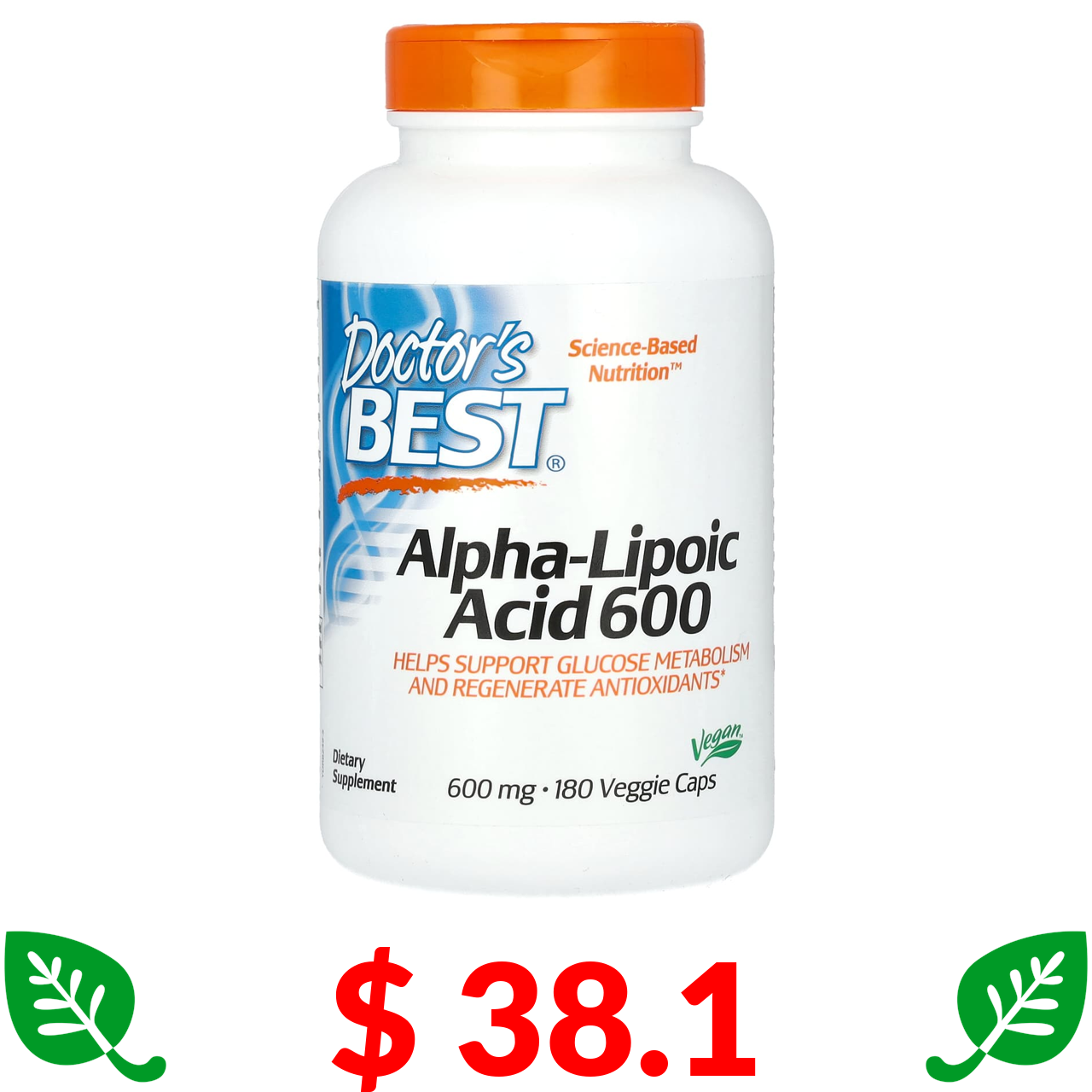 $ 38.1 Doctor's Best, альфа-ліпоєва кислота 600, 600 мг, 180 вегетаріанських капсул