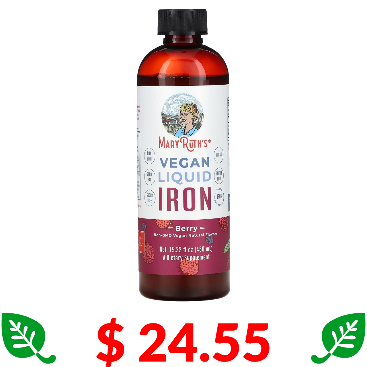 $ 24.55 MaryRuth's, веганський рідкий вміст заліза, ягоди, 450 мл (15,22 рідк. унції)