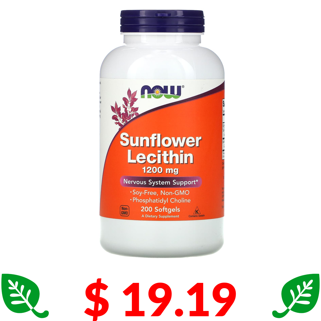 $ 19.19 Now Foods, соняшниковий лецитин, 1200 мг, 200 м’яких таблеток