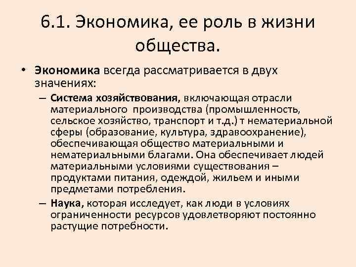 чение экономике в обществе