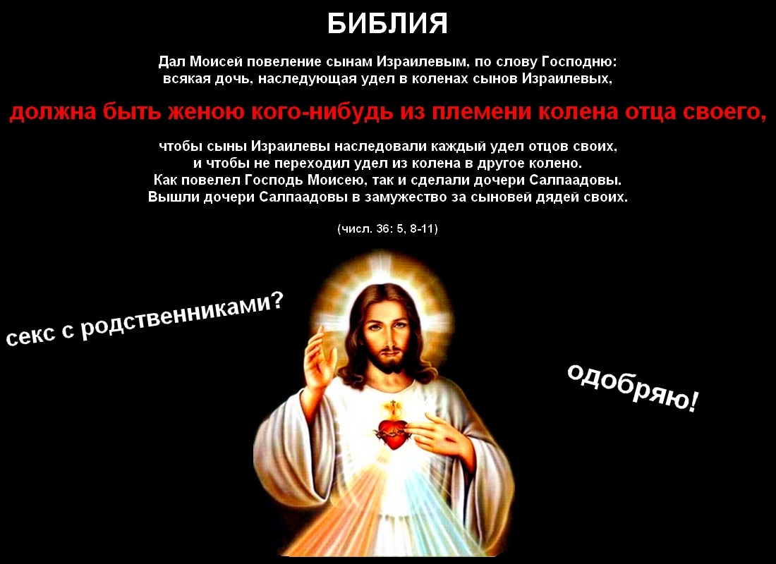 PavelВ тридцать шестой главе Иегова с Моисеем дают наставление - заключать браки с близкими родственниками. Обосновывается это экономическими причинами. (числ. 36: 5, 8-11)