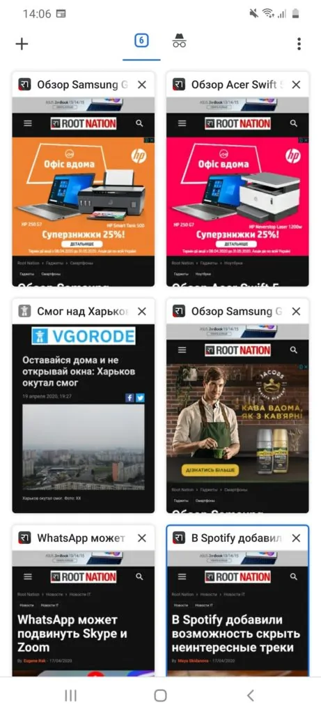 9. Переключатель вкладок Chrome в виде плиток с отображением миниатюр страниц