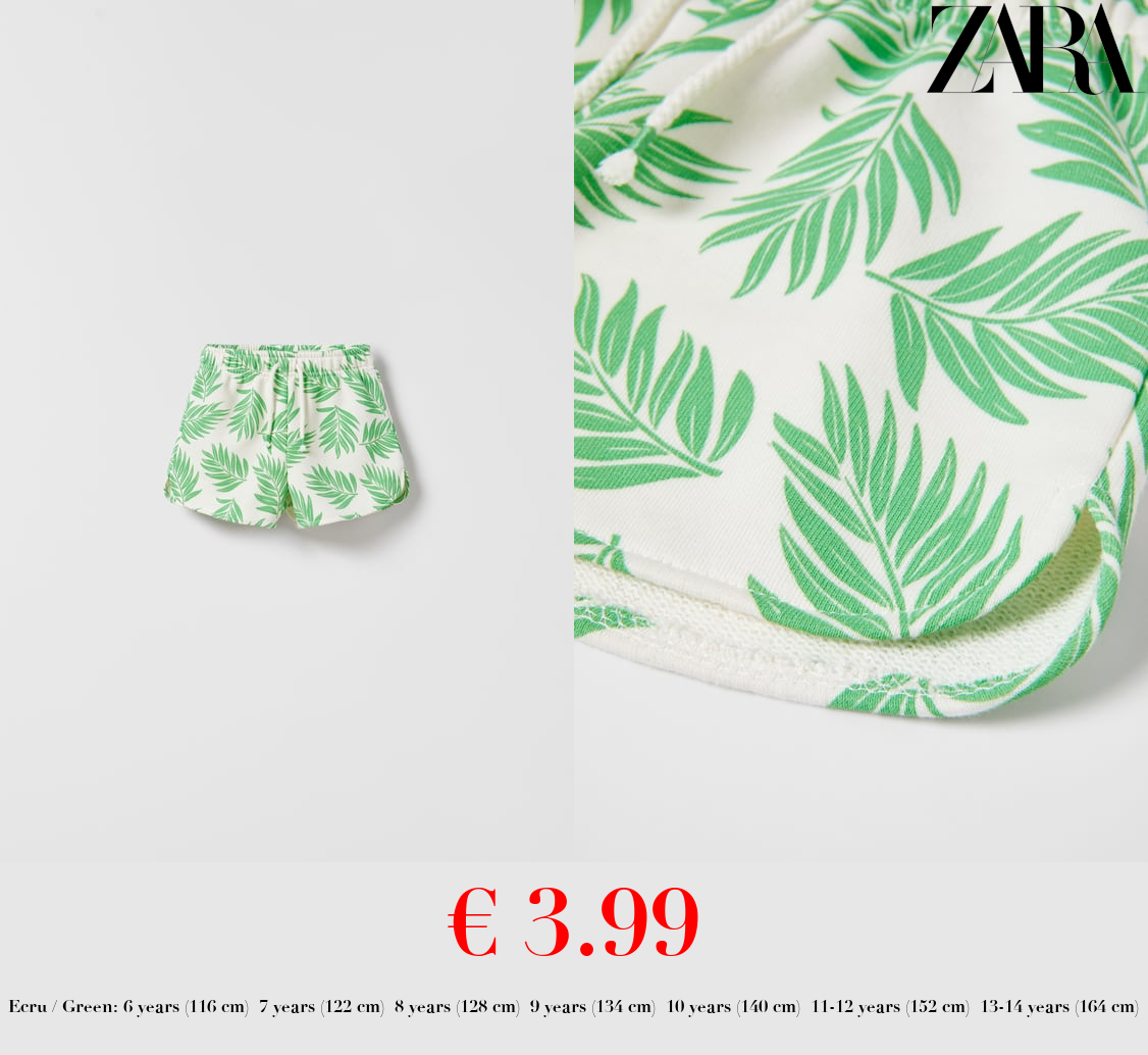 € 3.99 PLUSH BERMUDA SHORTS WITH LEAVES PRINT