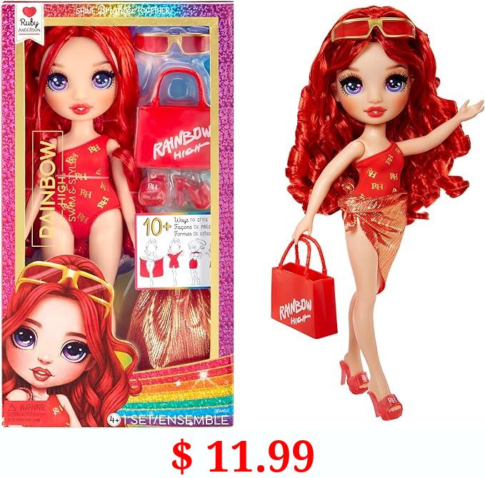 $ 11.99 Rainbow High Swim & Style Ruby, Red 11" Fashion Doll with Shimmery Wrap to Style 10+ Ways, Removable Swimsuit, Sandals, Fun Play Accessories. Kids Toy Gift Ages 4-12 Years