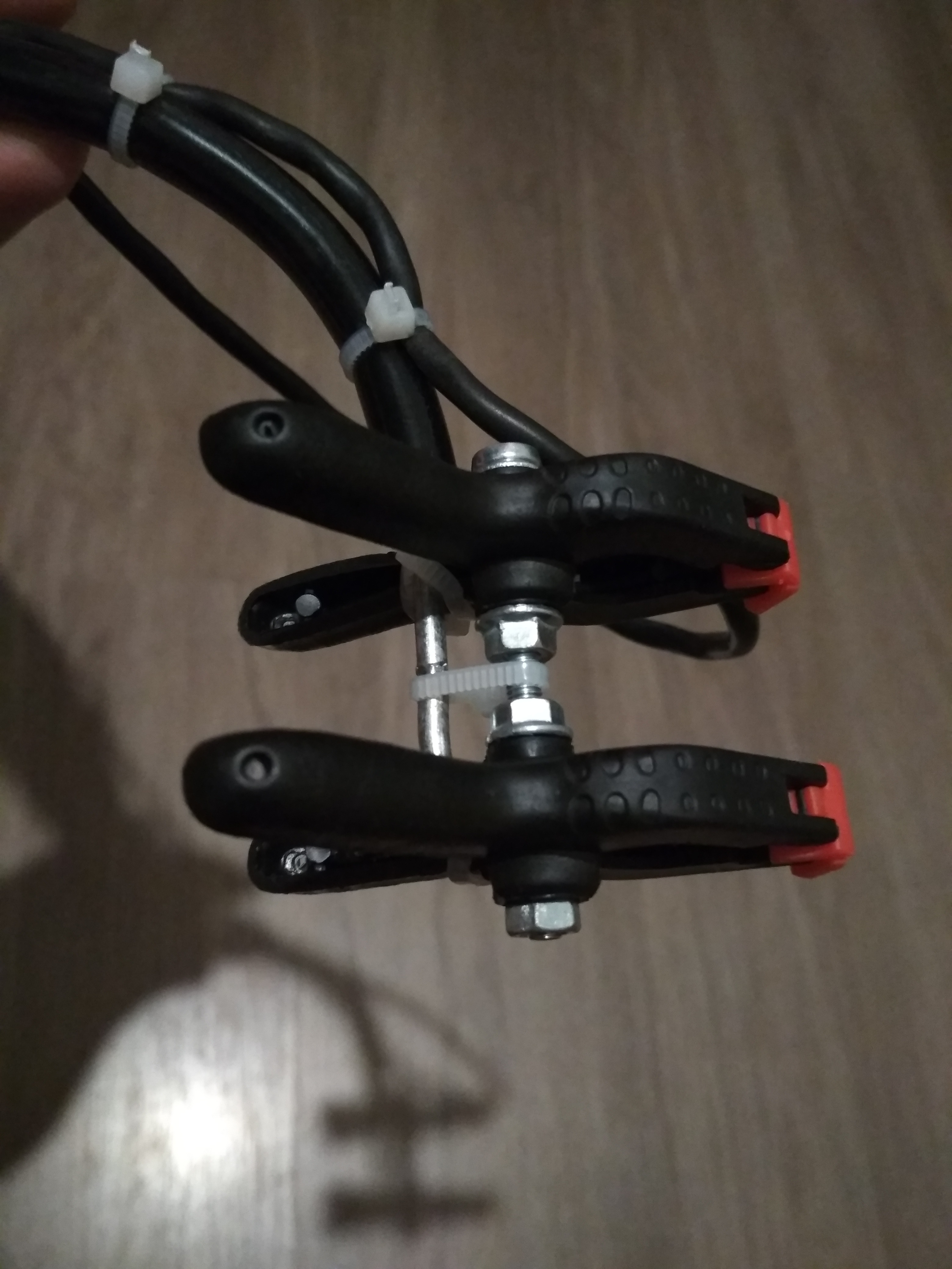 Ну а далее, я взял две таких струбцинки. Разобрал их и скрутил для жёсткости винтом М4. Надо было конечно М3 взять или рассверлить чутка, но я и так туда их вкрутил нормально. 😜