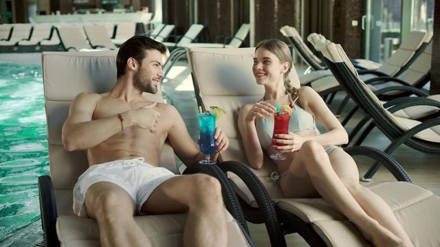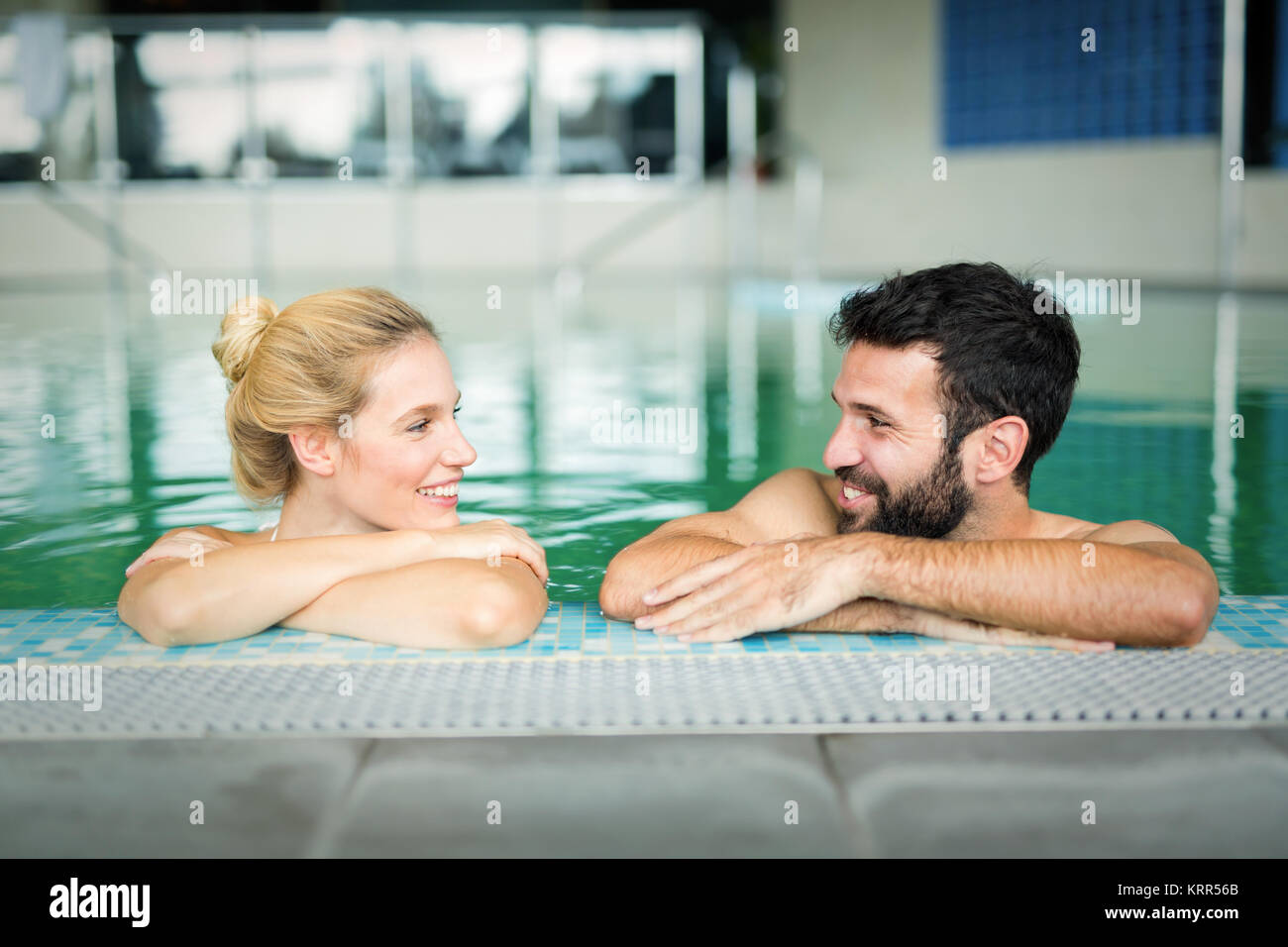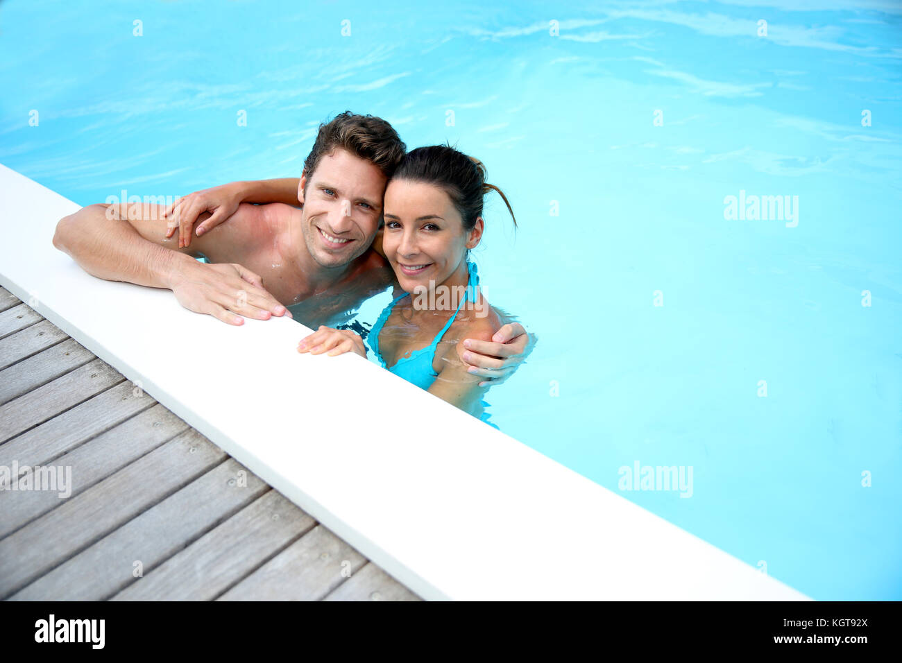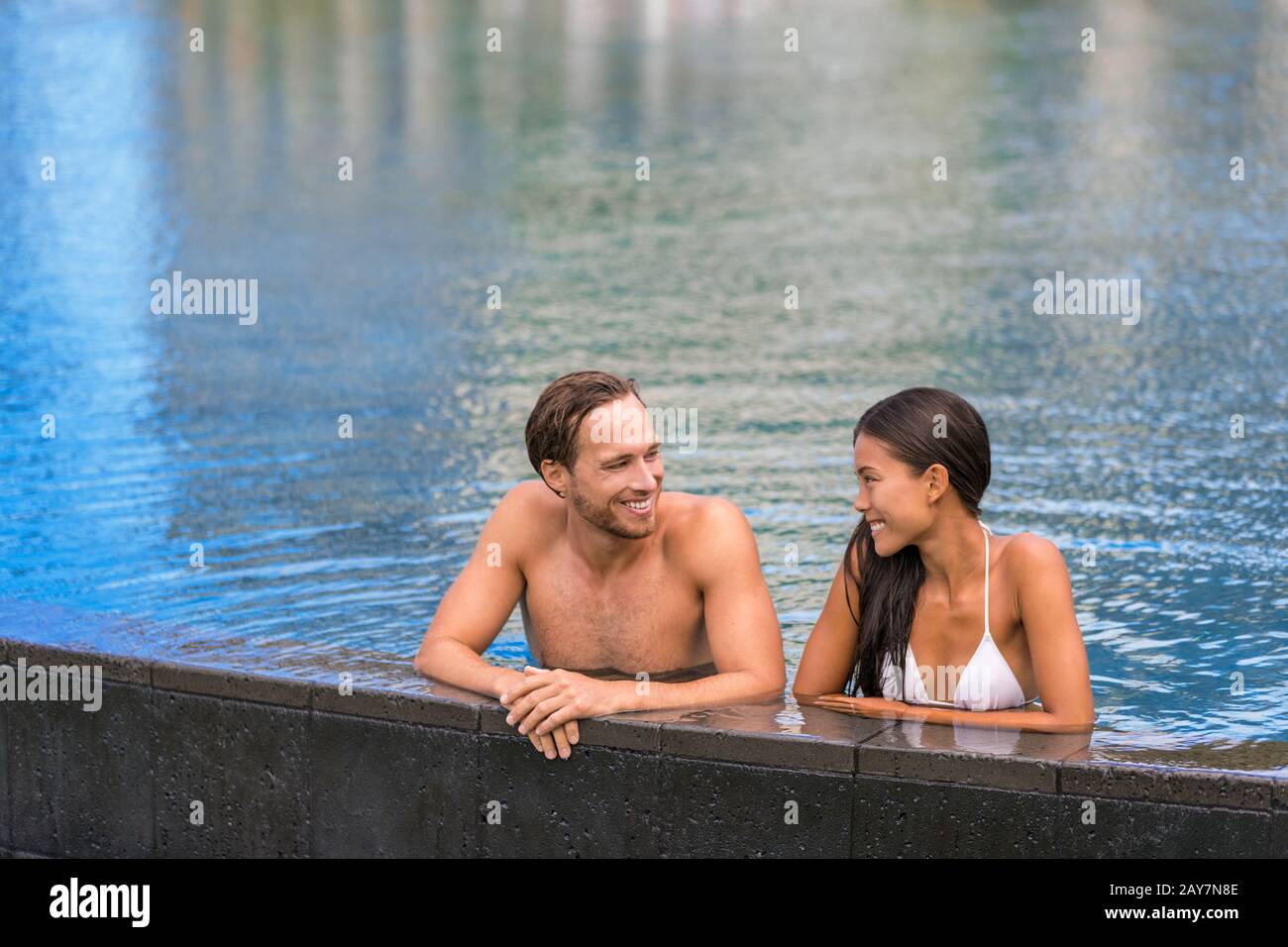 couple in pool cabine
