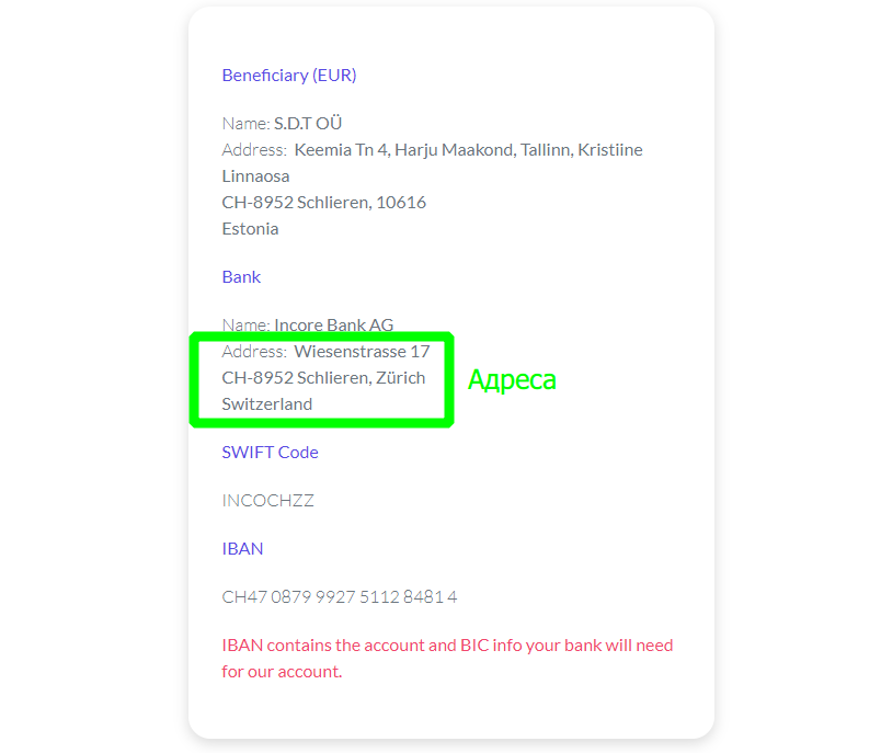 Там де адреса отримувача (копіюємо адресу — відмічено зеленим)👇: