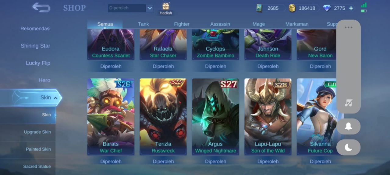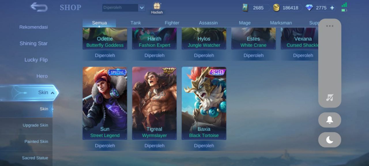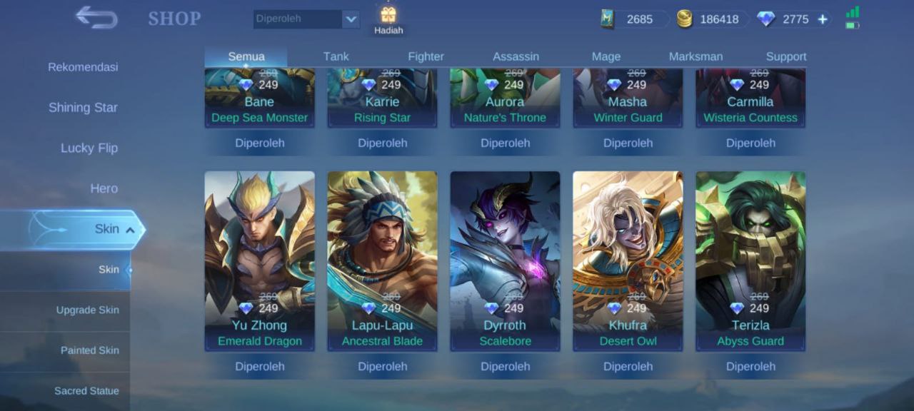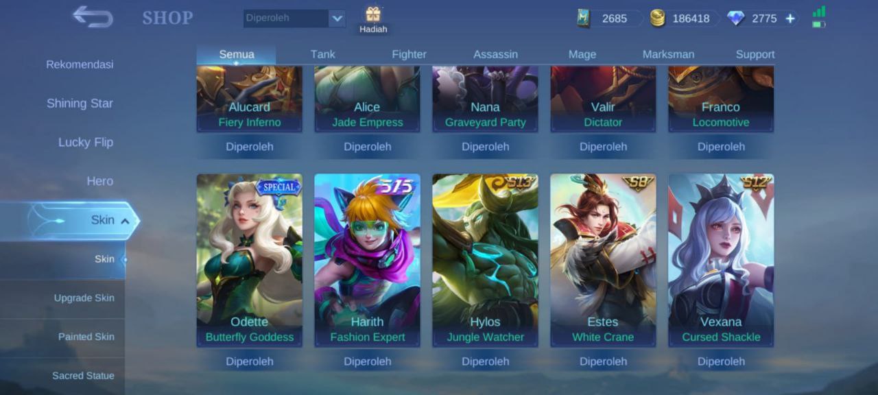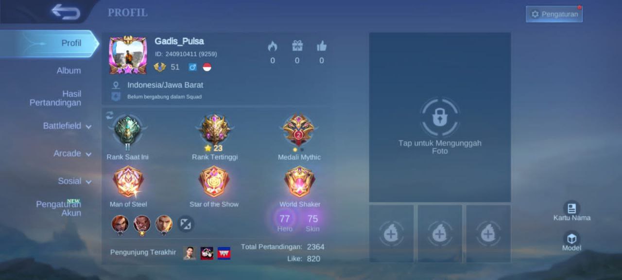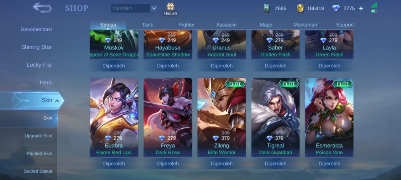 Dijual Akun ML 800rbDijual Akun ML 800k masih ada 2775 diamond minat chat gua t.me/HaruangimangRekbernya gua