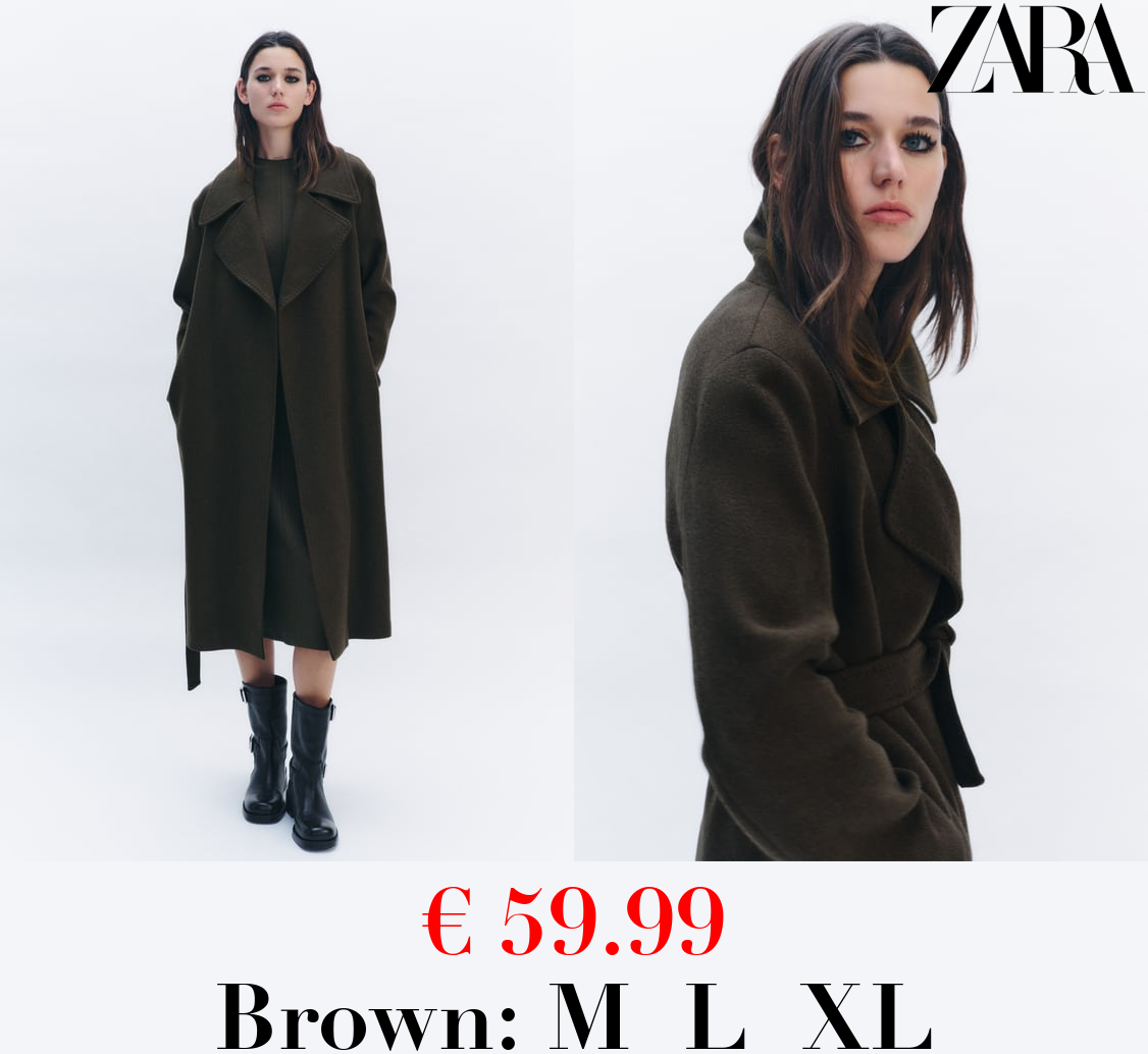 € 59.99 LONGLINE BELTED WOOL BLEND COAT