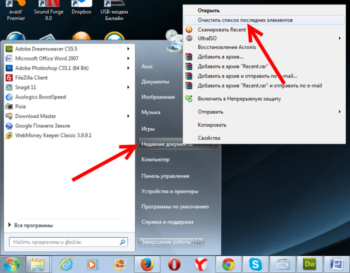 далить историю виндовс 10