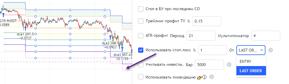 3. Добавлен стоп-лосс от последнего уровня